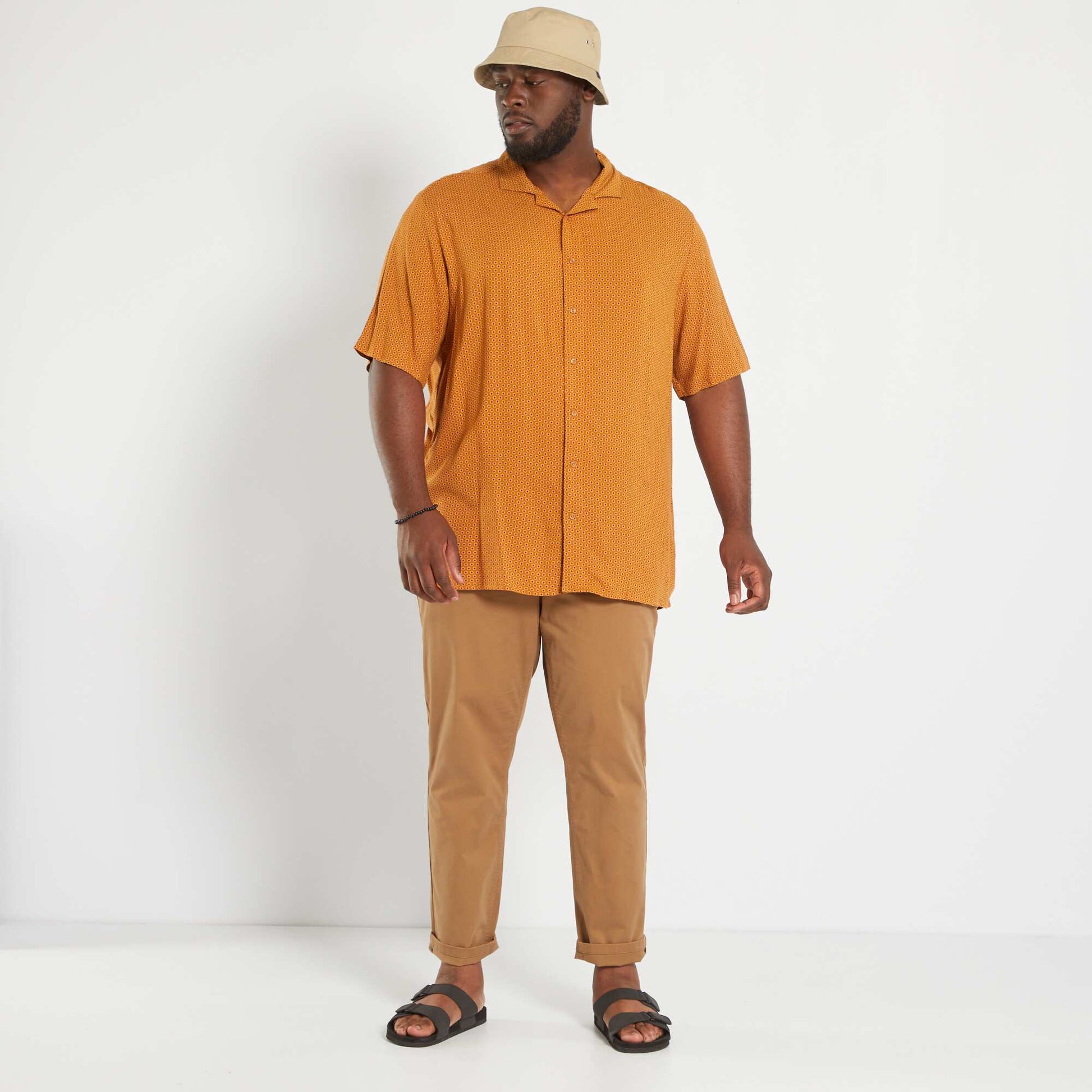Nous avons une bonne nouvelle, son prix est en baisse :) L'indispensable chino revisité avec ses finitions travaillées et dans une coupe plus près du corps. - Pantalon chino - Slim / Coupe semi-ajustée - Longueur 32 ( pour les personnes mesurant entre 1m70 et 1m80) - Twill de coton stretch - Taille standard - Passants pour ceinture de 5,5 cm de largeur - Ouverture bouton + zip sous patte - 2 poches avant - 2 poches passepoilées au dos - Doublure chambray à l'intérieur de la taille - Finitions surpiqûres contrastées revers bas de jambes - Longueur entrejambe 77 cm, largeur bas de jambe 20,5 cm environ Notre mannequin porte une taille 56 et mesure 1m89