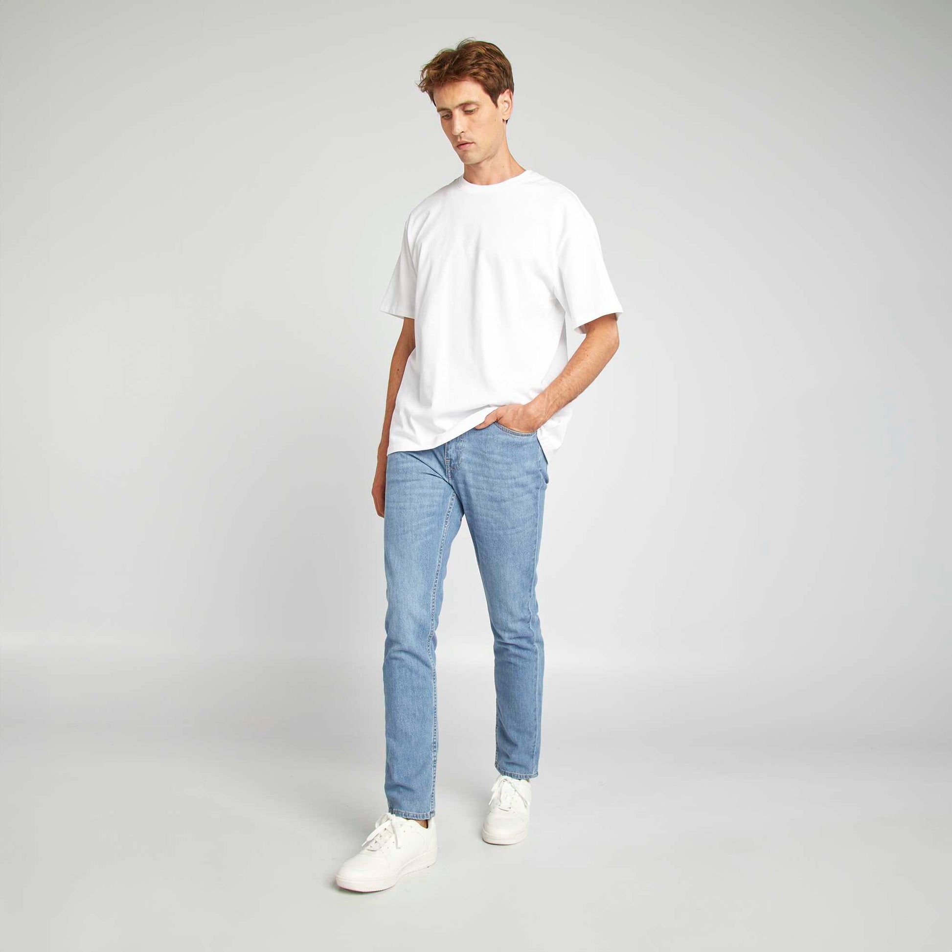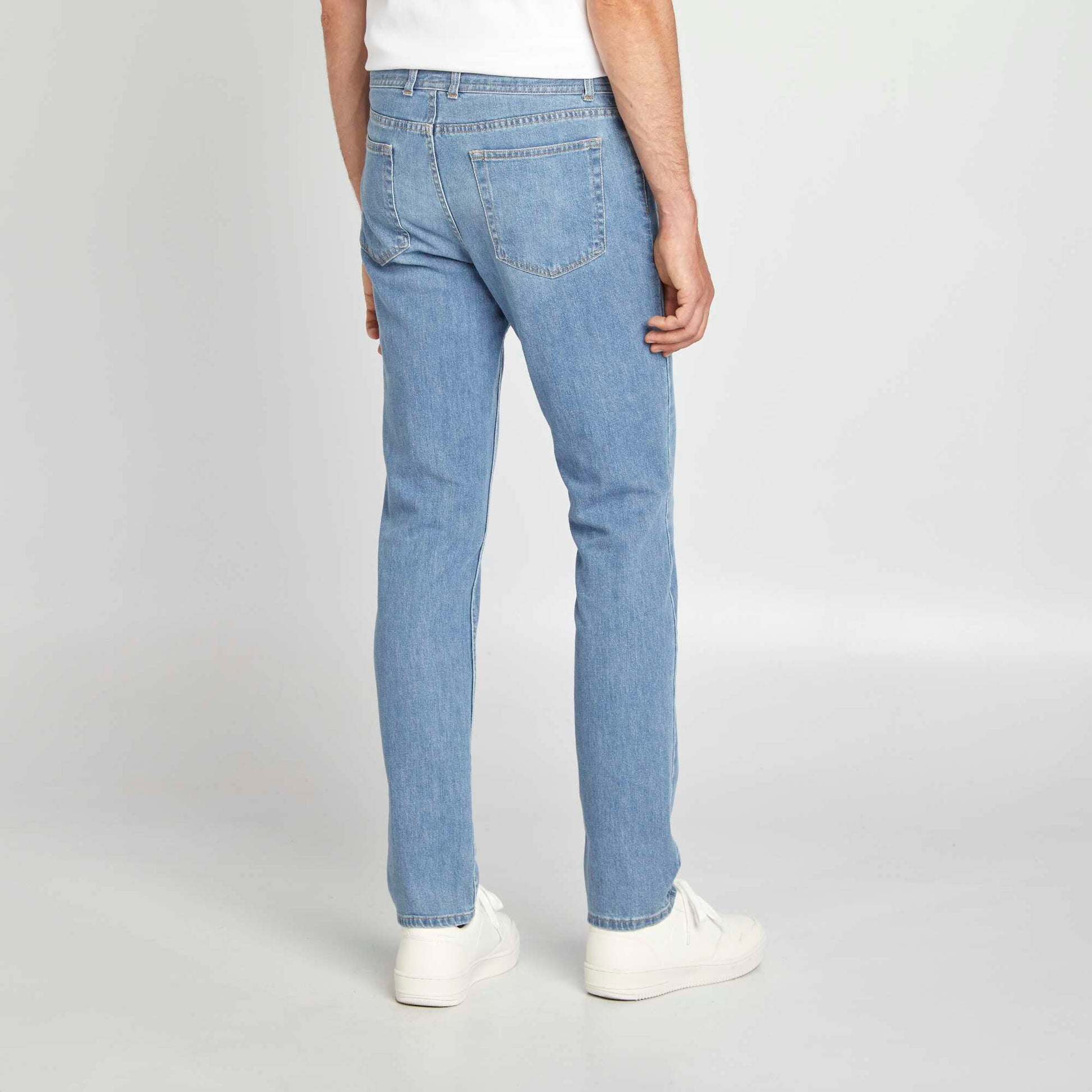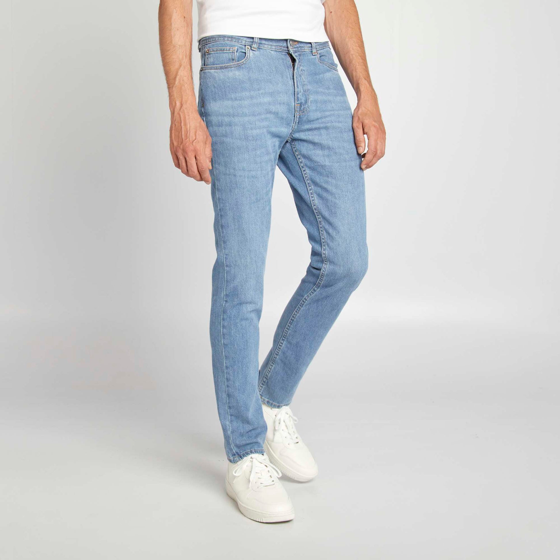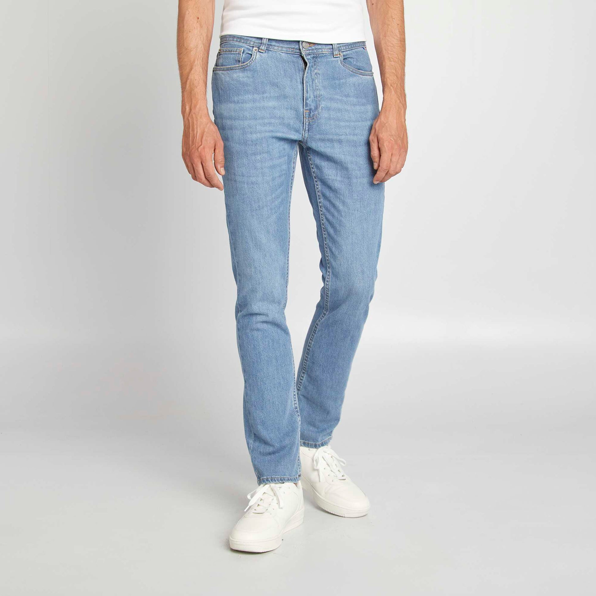 Ce vêtement a été fabriqué en France. Le slim fit à associer avec une paire de sneakers et un top basique, soit sweat, soit t-shirt en fonction de la météo. Et en fonction de la saison, il sera également parfait avec un parka ! - Jean légèrement stretch (2% élasthanne) - Slim fit / Coupe ajustée - Taille standard - Ouverture bouton + patte zippée - Passants pour ceinture - Poche ticket + 2 poches plaquées devant - 2 poches au dos - Etiquette France cousue au niveau de la poche - Notre mannequin porte une taille 40 et mesure 1m85