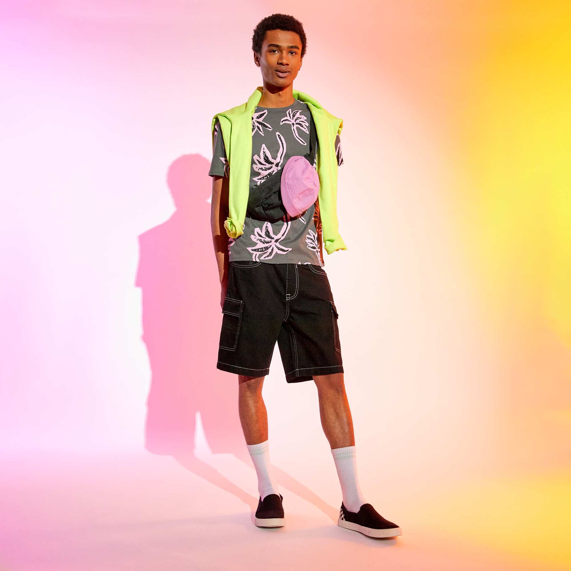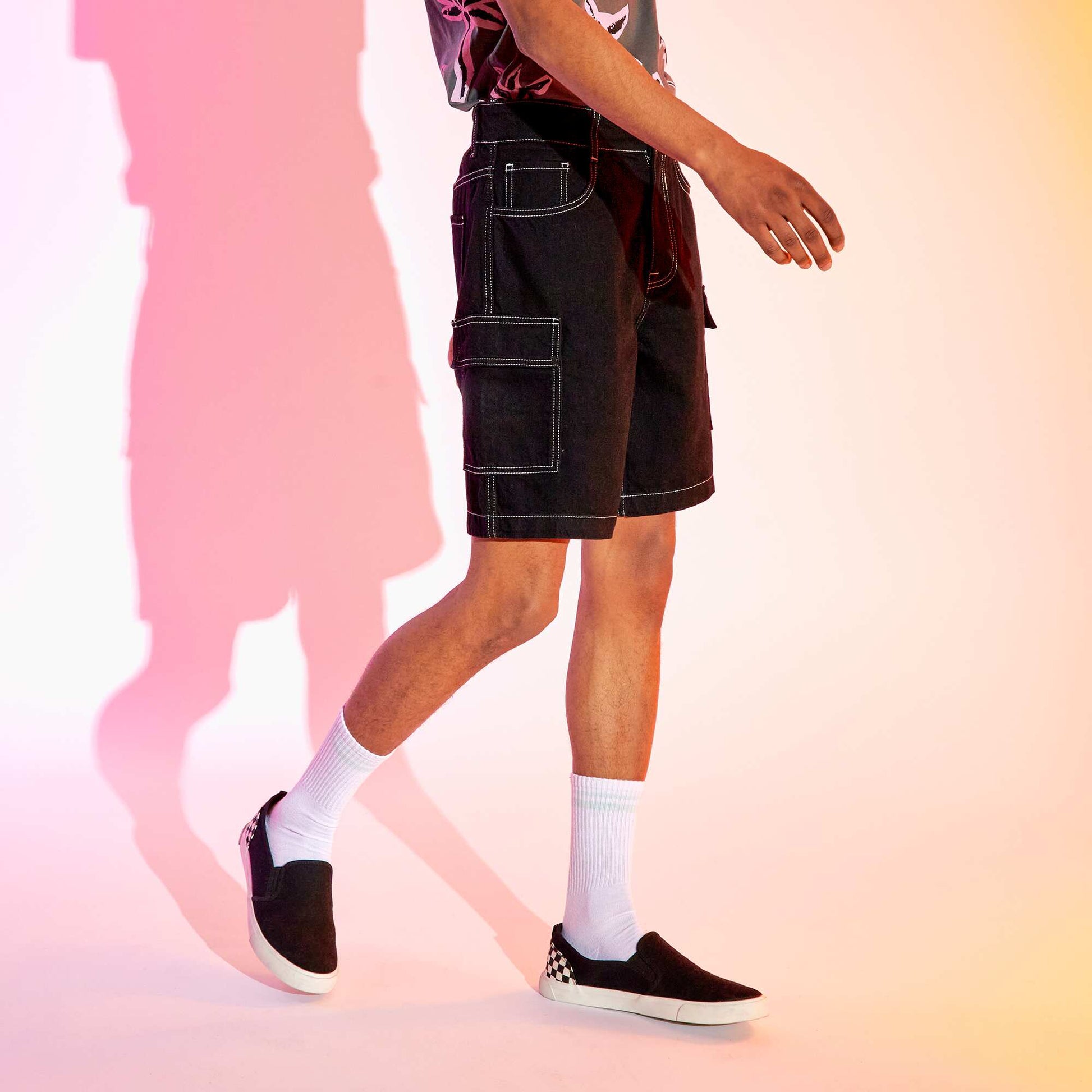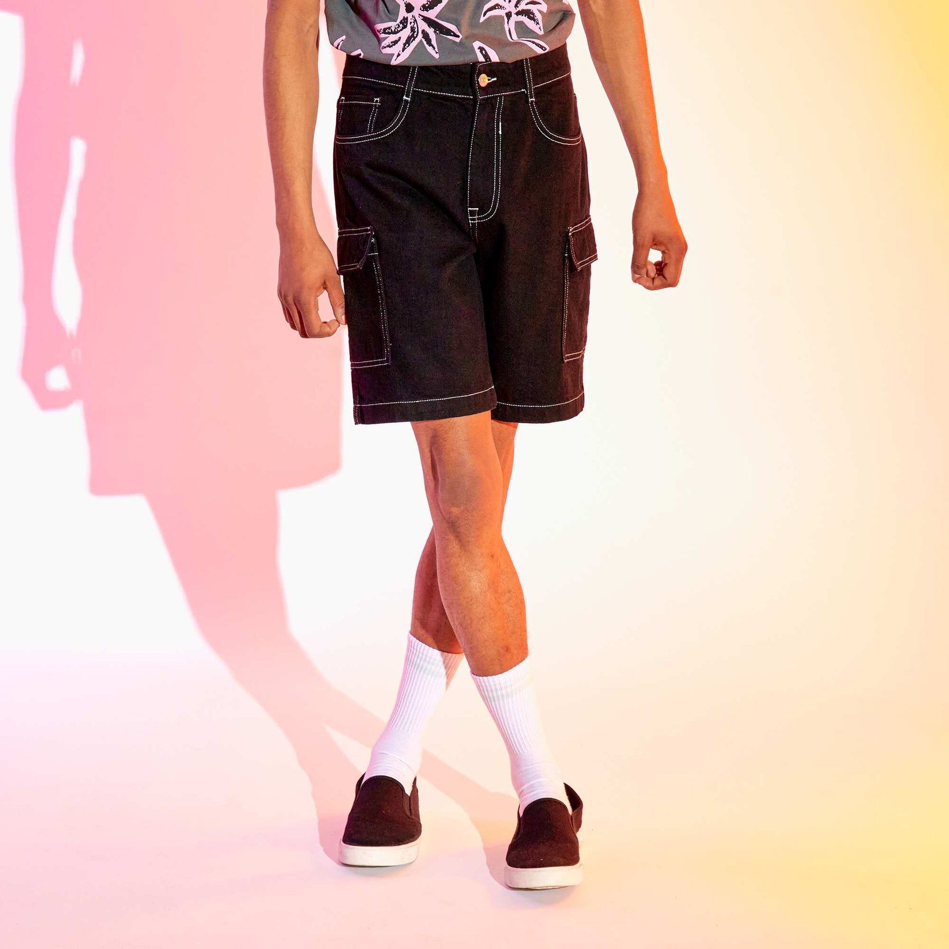 Un short en denim super styl ! - Short bermuda en denim - 100% coton - Col rond - Ouverture par boutons pressions - 2 poches devant + 1 poche ticket - 2 poches rabat devant - 2 poches plaqu es au dos - Surpiqures apparentes - Couleur unie