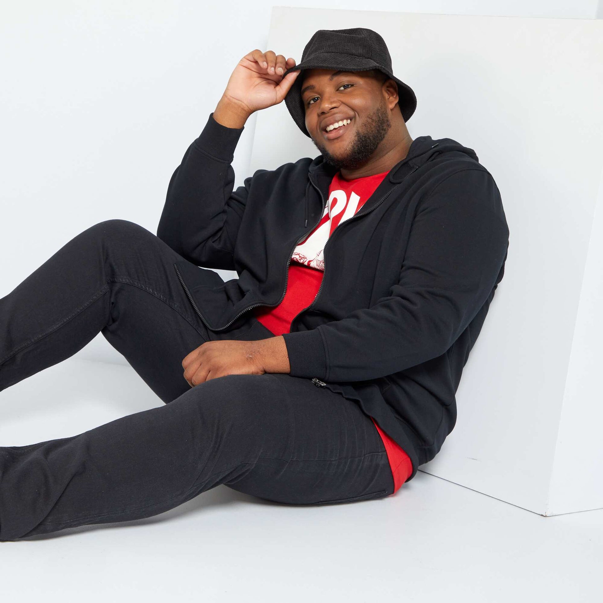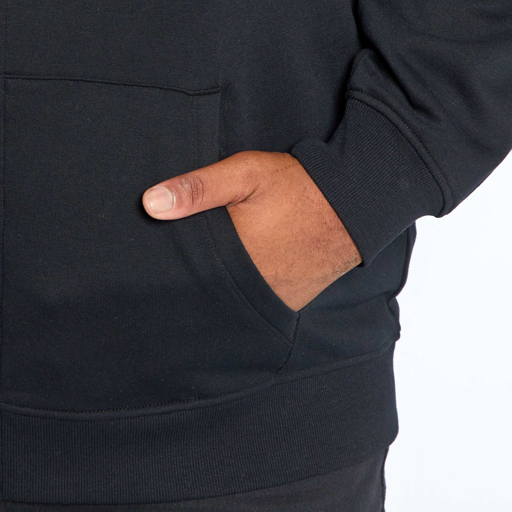 Un basique pour vos looks du quotidien. - Sweat zipp en molleton - Coton majoritaire - Molleton gratt (chaud et doux) - Col capuche avec lien de serrage - Manches longues - Ouverture zipp e - 2 poches plaqu es devant - Finition bord-c t la base et aux poignets - Couleur unie - Longueur dos : 75 cm - Notre mannequin porte une taille 3XL et mesure 1m87