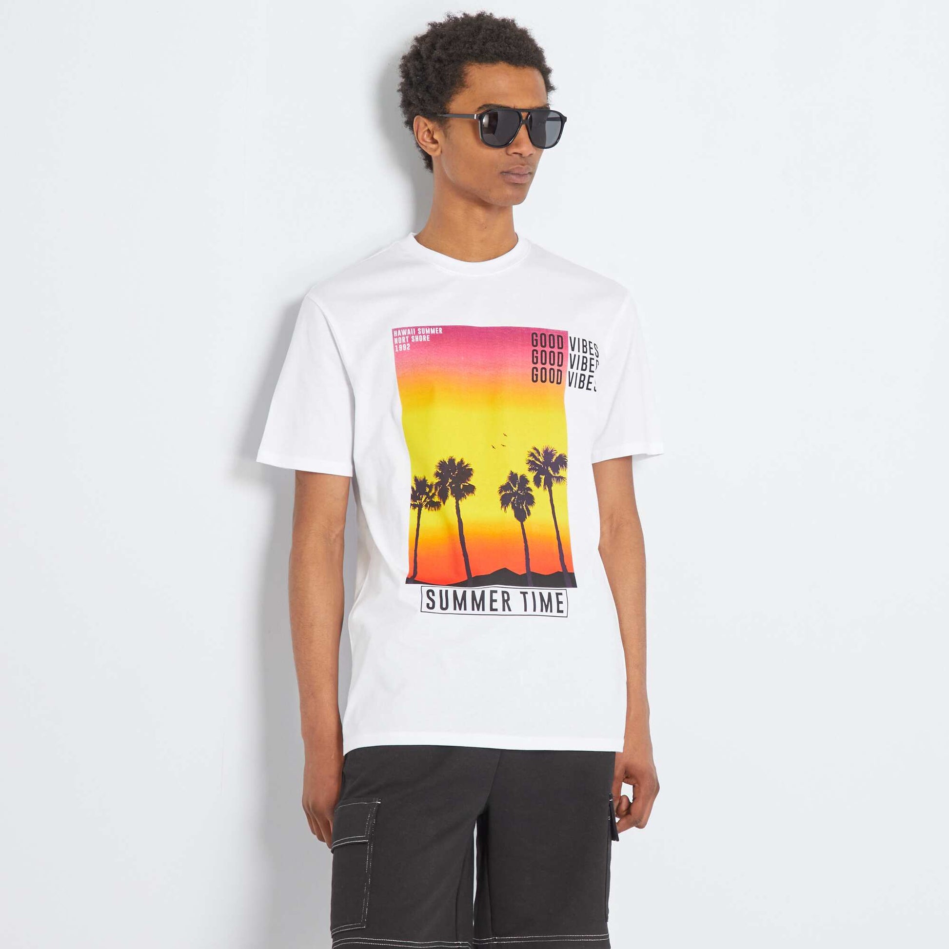 Un t-shirt avec un imprim qui nous am ne directement en 'Californie' ! - Tee-shirt imprim - Col rond - Manches courtes - Finitions bords-c tes - Imprim devant