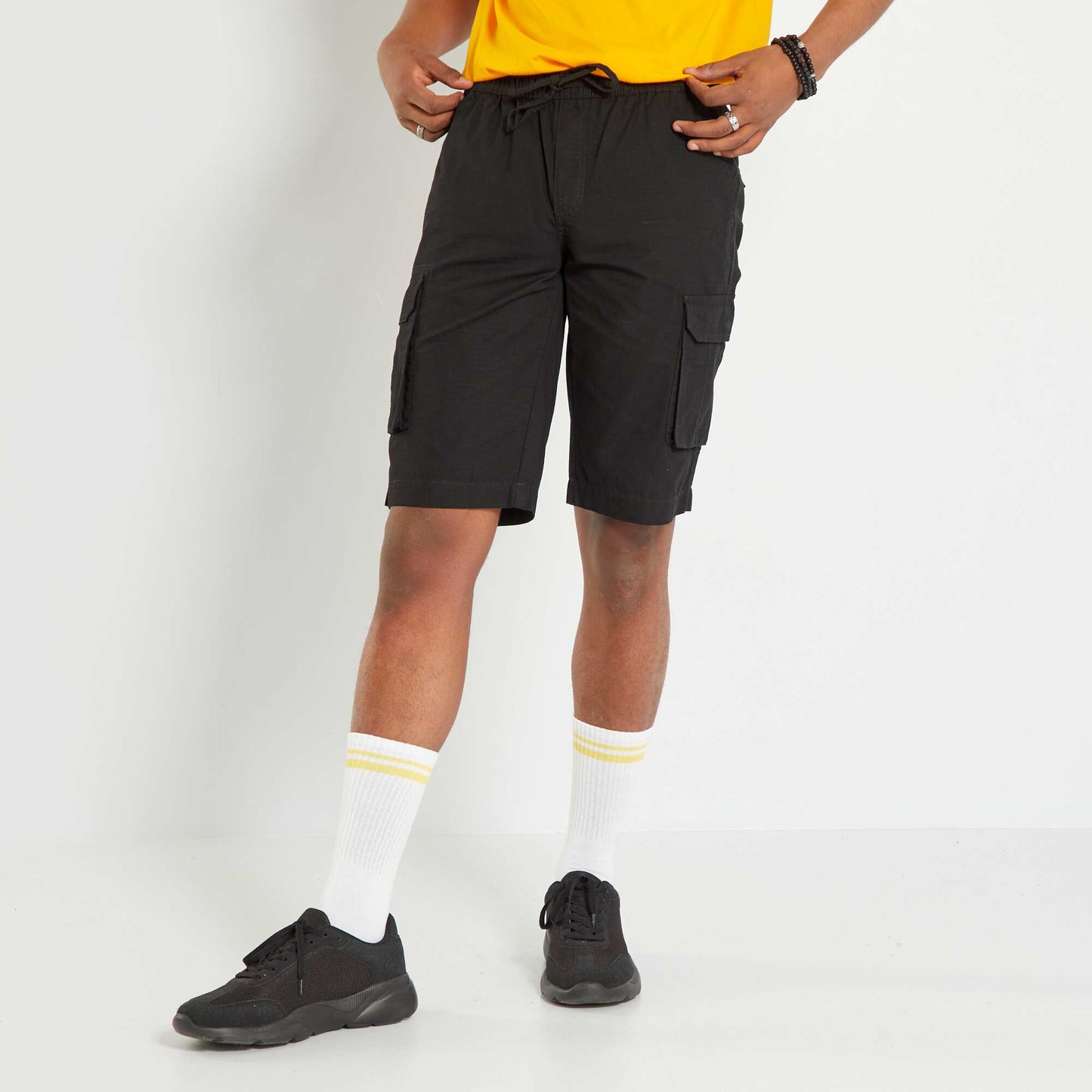 Un bermuda tendance pour un look soign . Parfait pour l' t ,-) - Bermuda en coton - Coupe regular / droite - Taille lastiqu e avec cordons - 2 poches devant - 2 poches derri res rabats - 2 poches sur es c t s - Couleur unie - Longueur entrejambe : 30 cm environ - Largeur bas de jambe : 24 cm environ - Notre mannequin porte une taille M et mesure 1m82