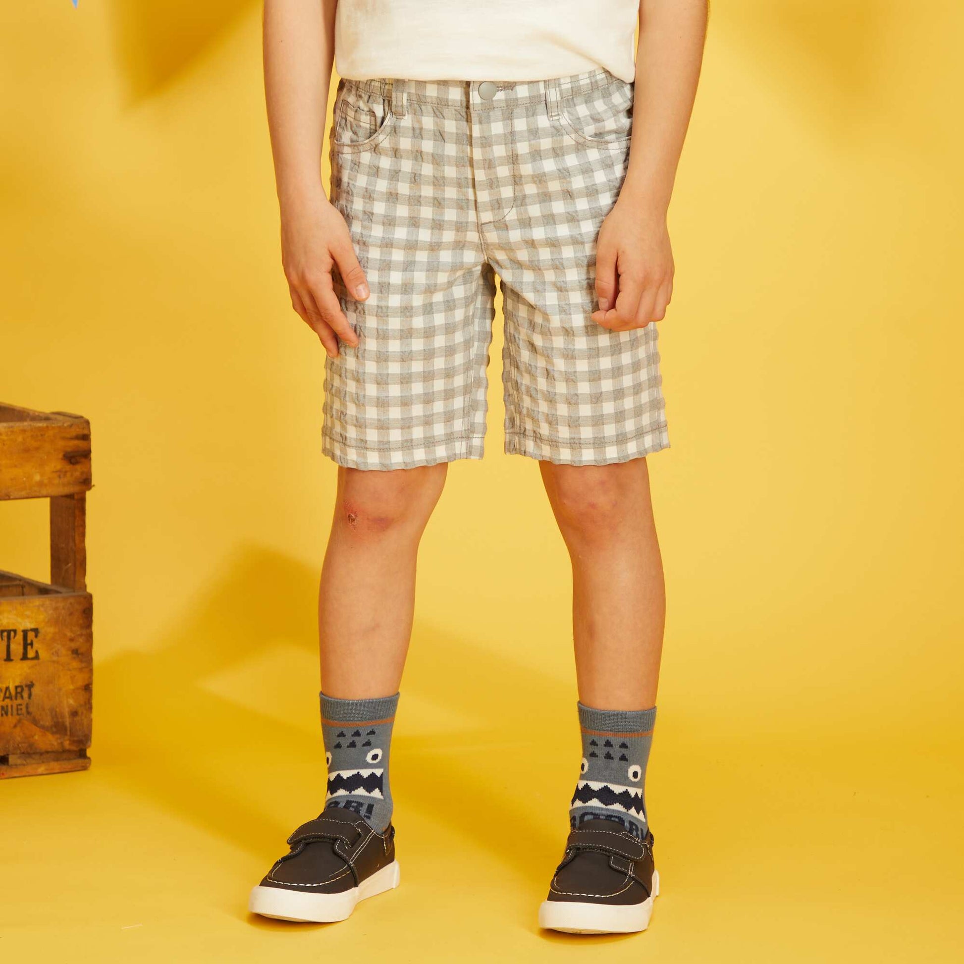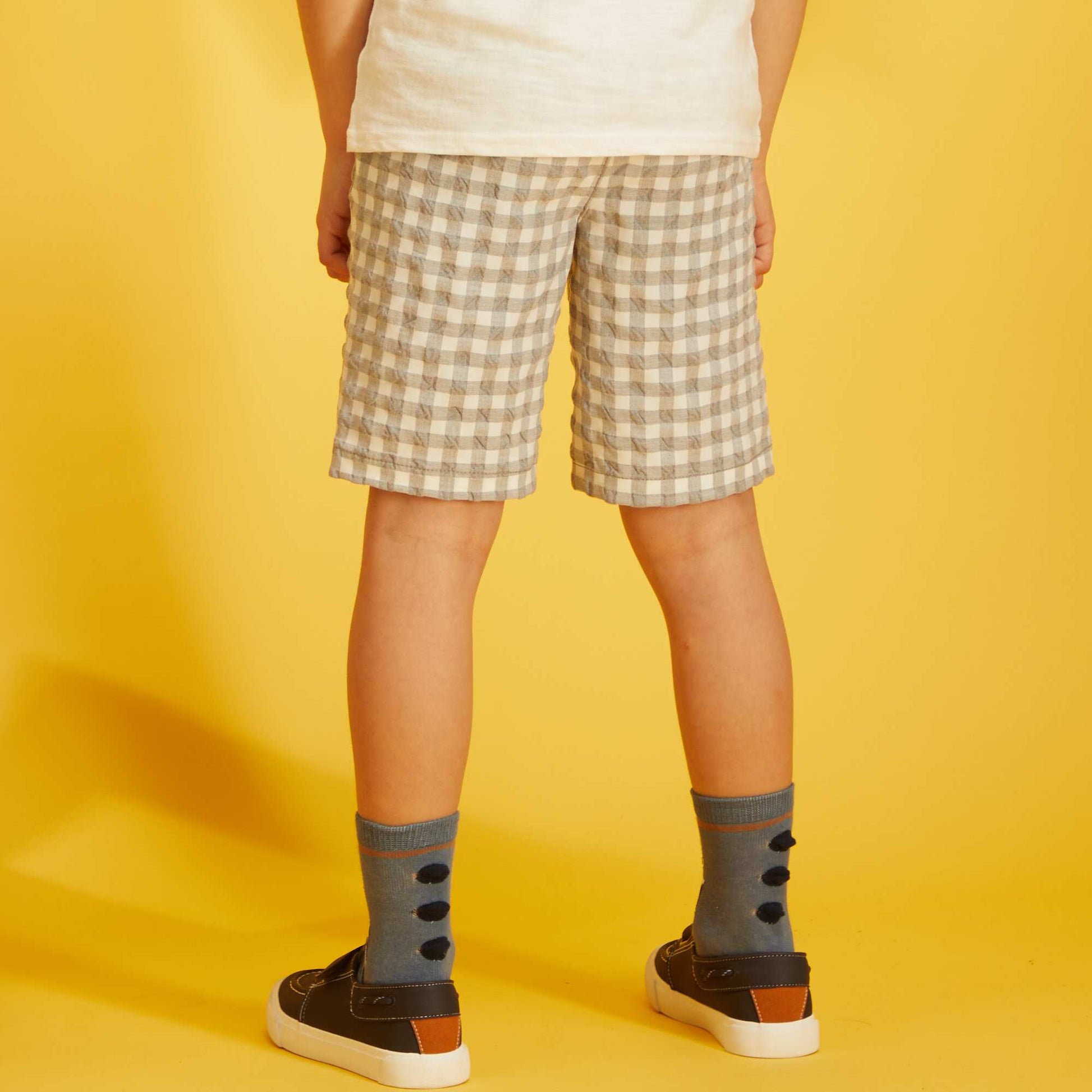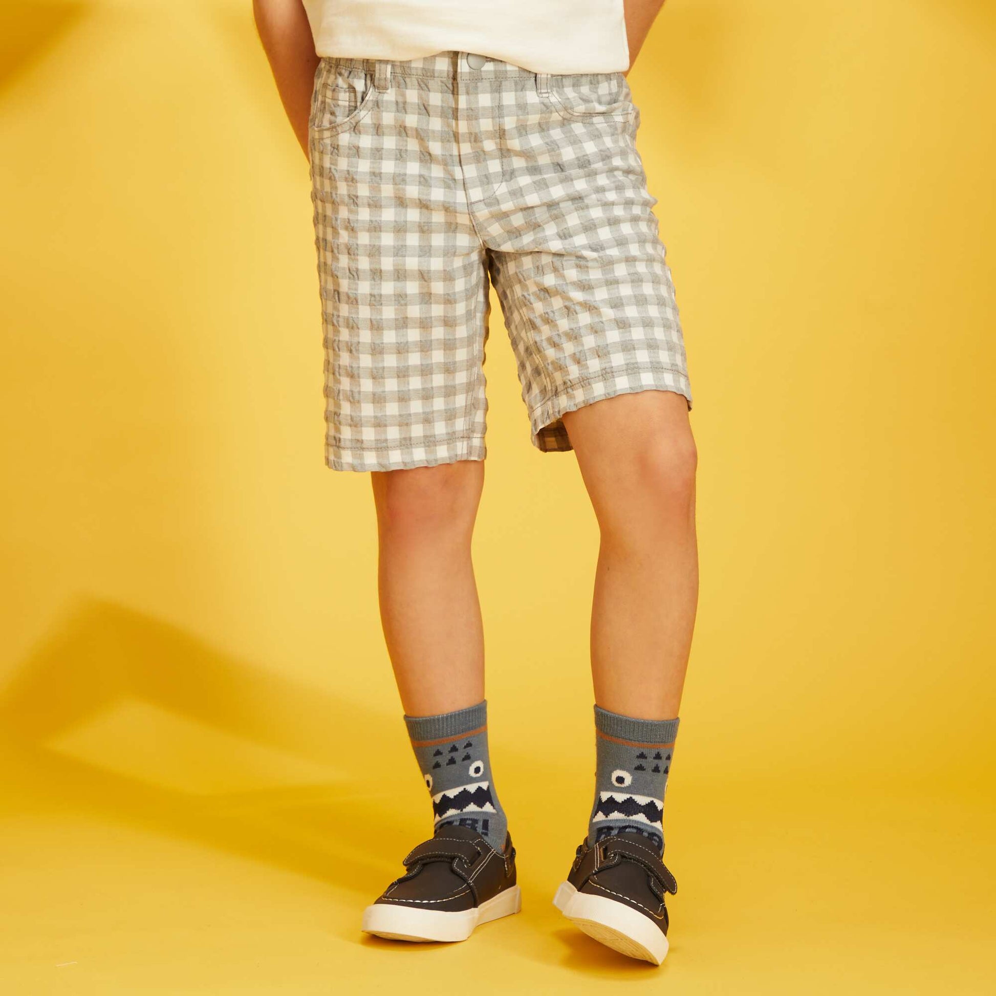 Bermuda vichy en maille froiss e Gris