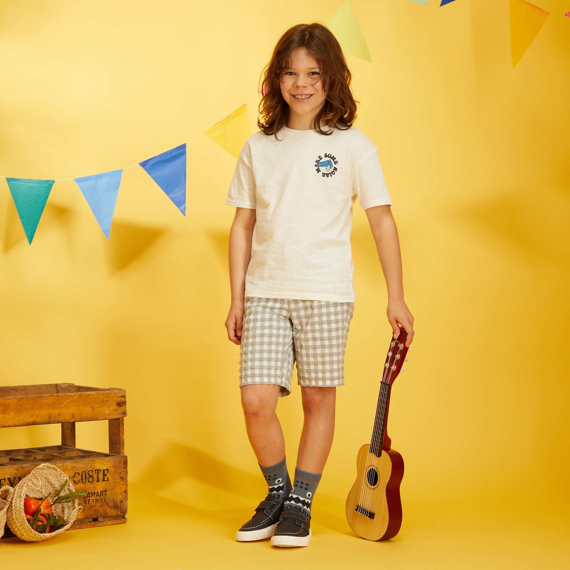 Le bermuda qui passe bien avec son imprim vichy ! - Bermuda vichy - Taille lastique avec bouton - Passants pour ceinture - 2 poches devant - 2 poches factices au dos - Imprim rayures
