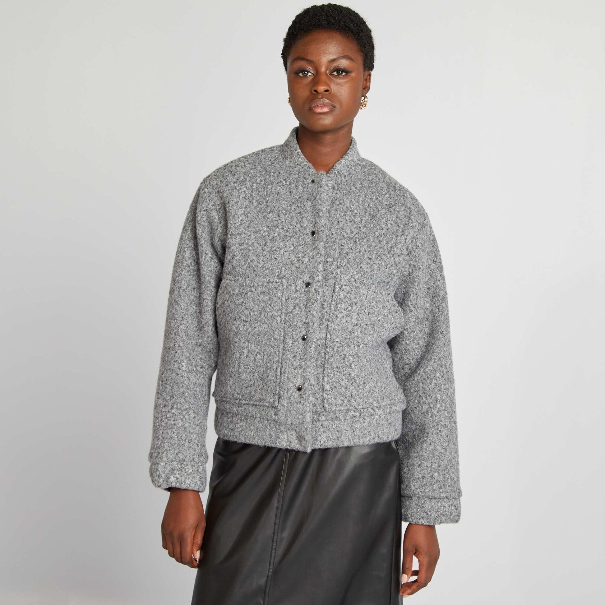 Un blouson qui vous prot gera du vent froid ! - Blouson imitation lainage - Ouverture pressionn e devant - 2 poches plaqu es - Poignets lastiques - Doublure satin e - Bas du corps lastique - Notre mannequin porte une taille S et mesure 1m75