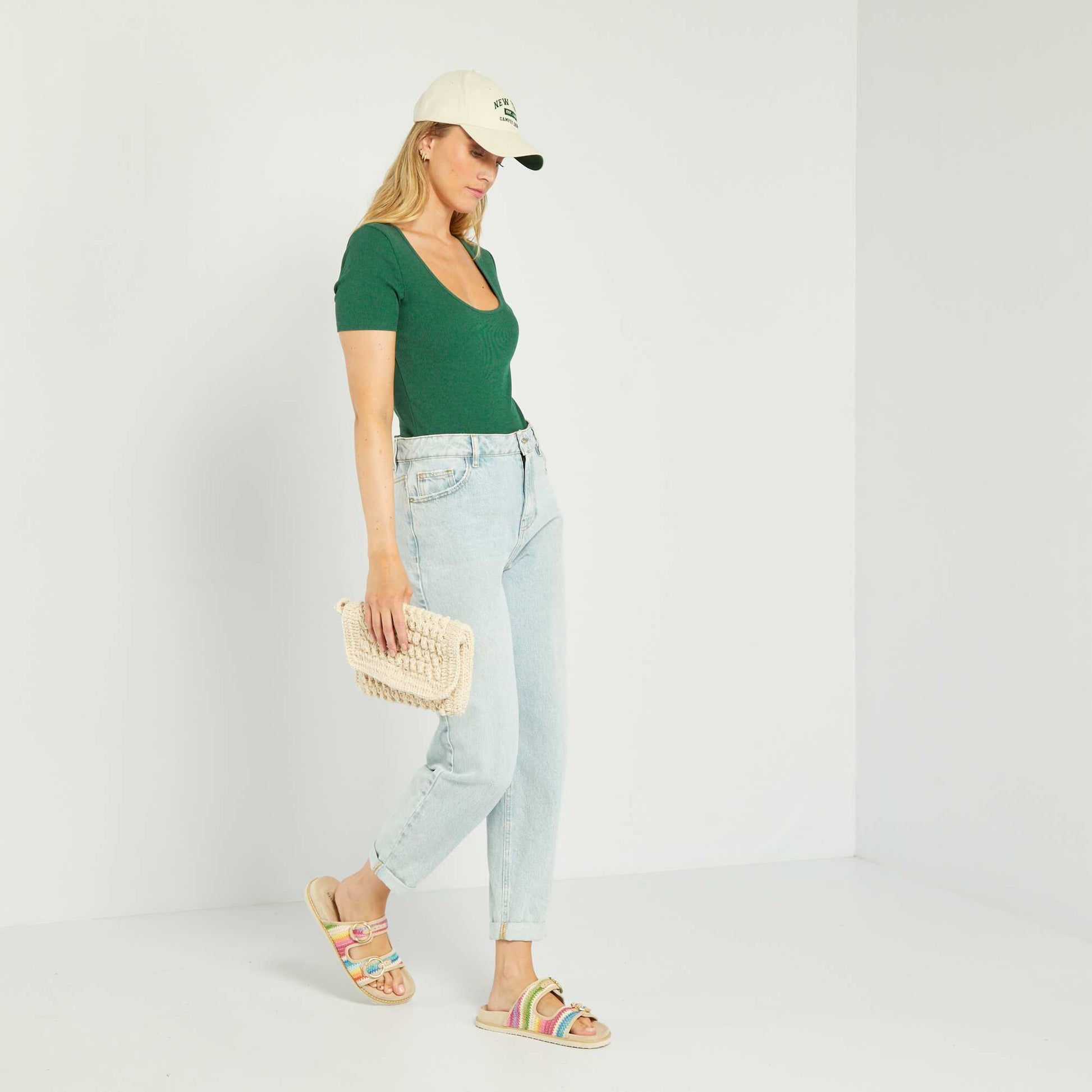 Body en maille côtelée unie vert