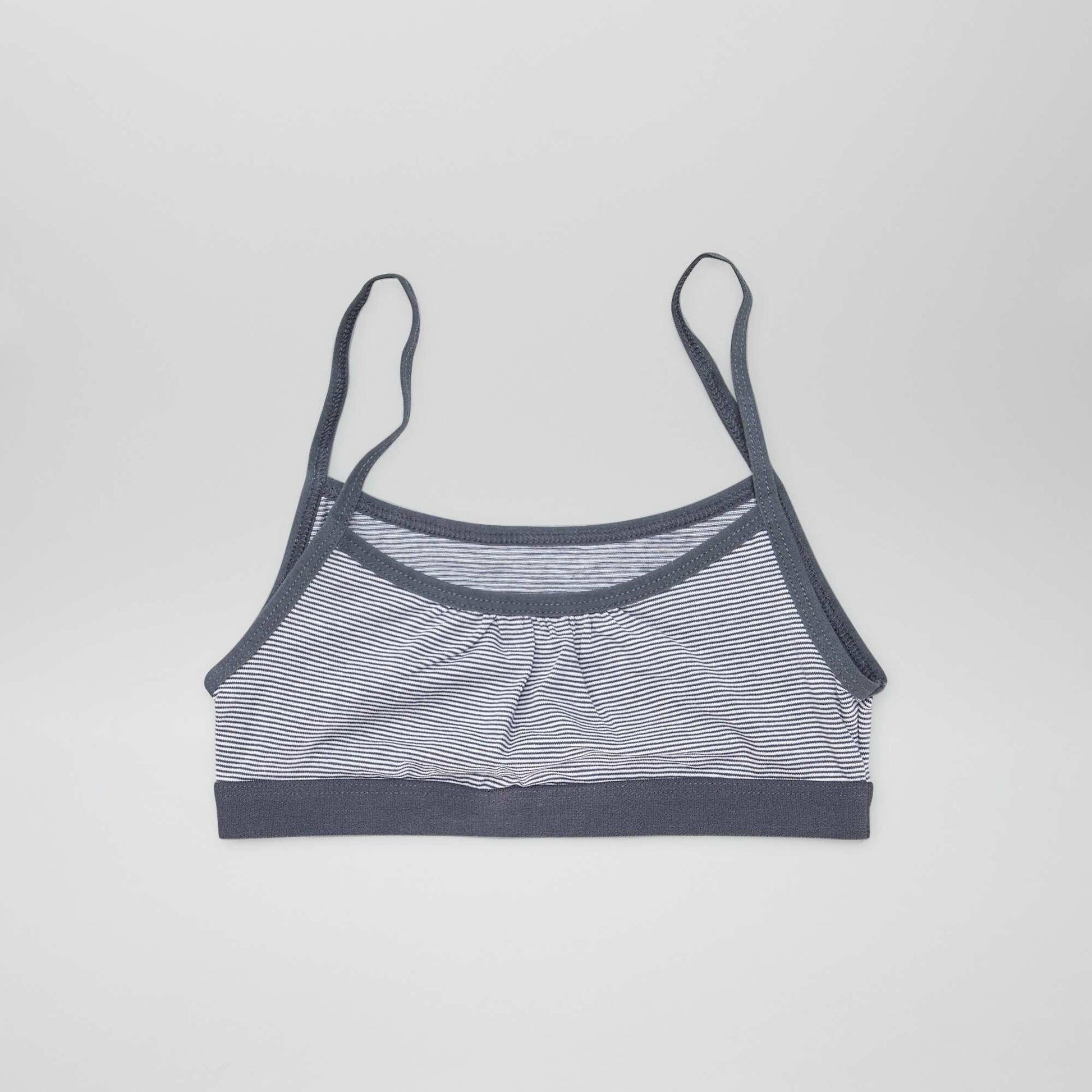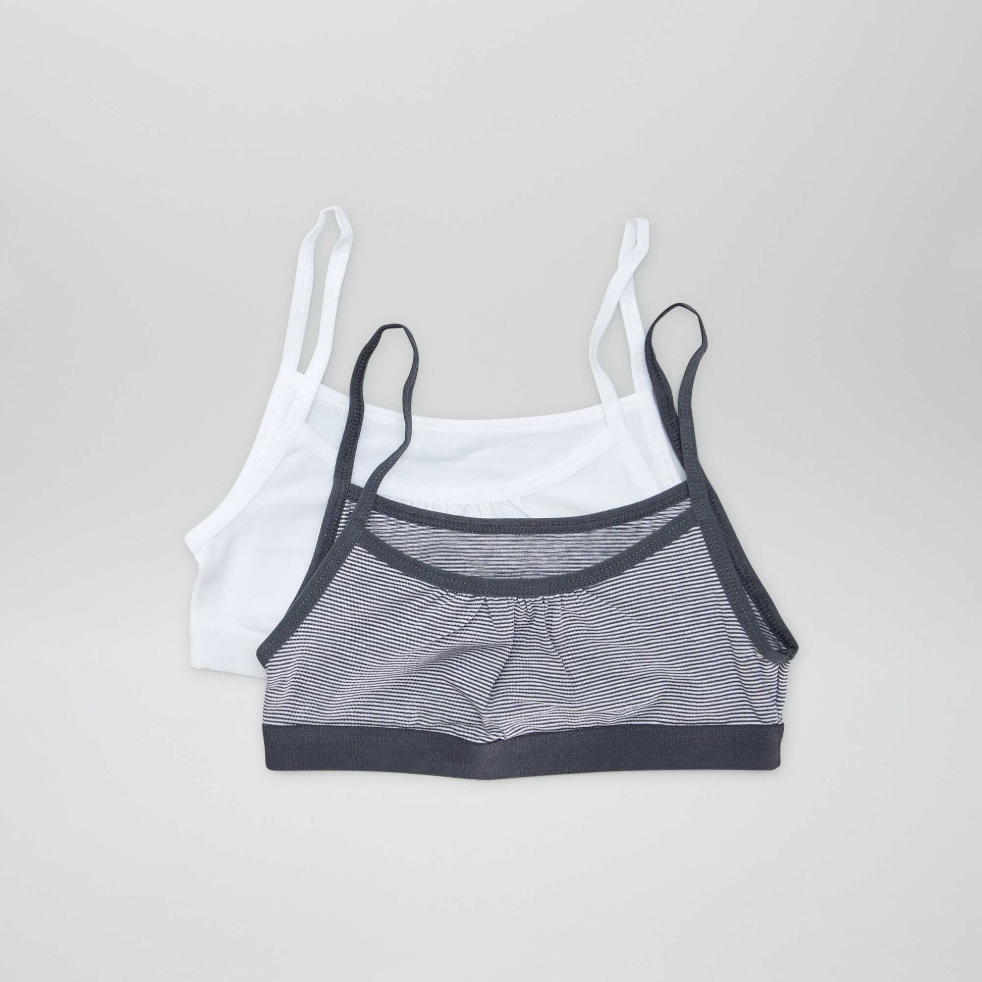 Lot de brassi res confortables gr ce ses fines bretelles et sa mati re l g re. - Lot de 2 brassi res - En jersey l ger - Fonces au col - Fines bretelles non ajustables - Elastique la base - 1 imprim e all-over - 1 unie