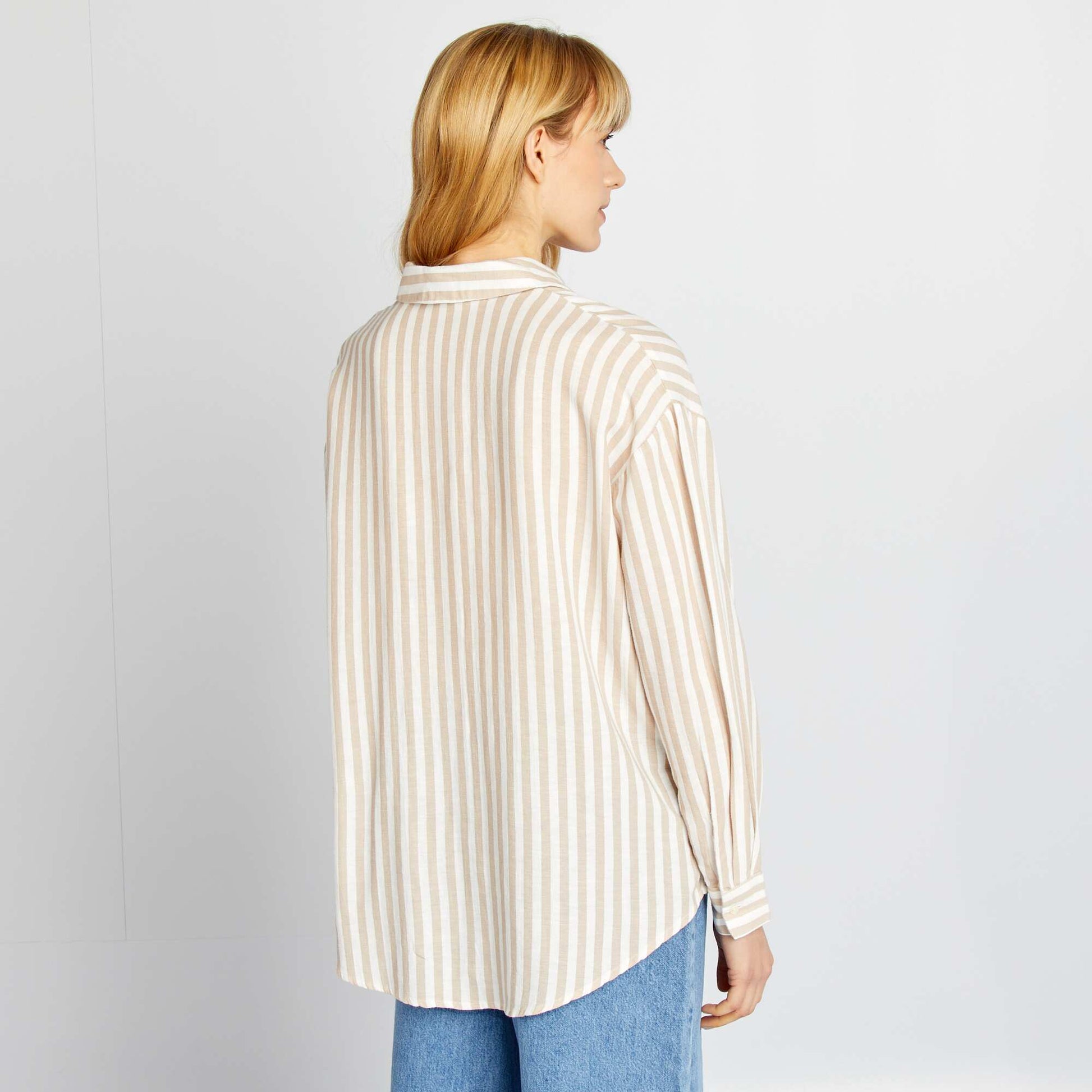 Une collection de chemisiers longs pour parfaire votre style en une touche ! - Chemisier long - Contient 20% de lin - Coupe longue - Col à pointes libres - Ouverture boutonnée - Manches longues - Rayée - Poche poitrine - Longueur du dos : 77 cm environ - Notre mannequin porte une taille S et mesure 1m75