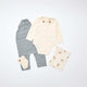 Profiter d'un tout en un pratique et polyvalent pour bébé ! - Body uni - Col rond - Salopette longue unie - Boutonné au col - Chaussette à motif - Lange en gaze de coton - A motif