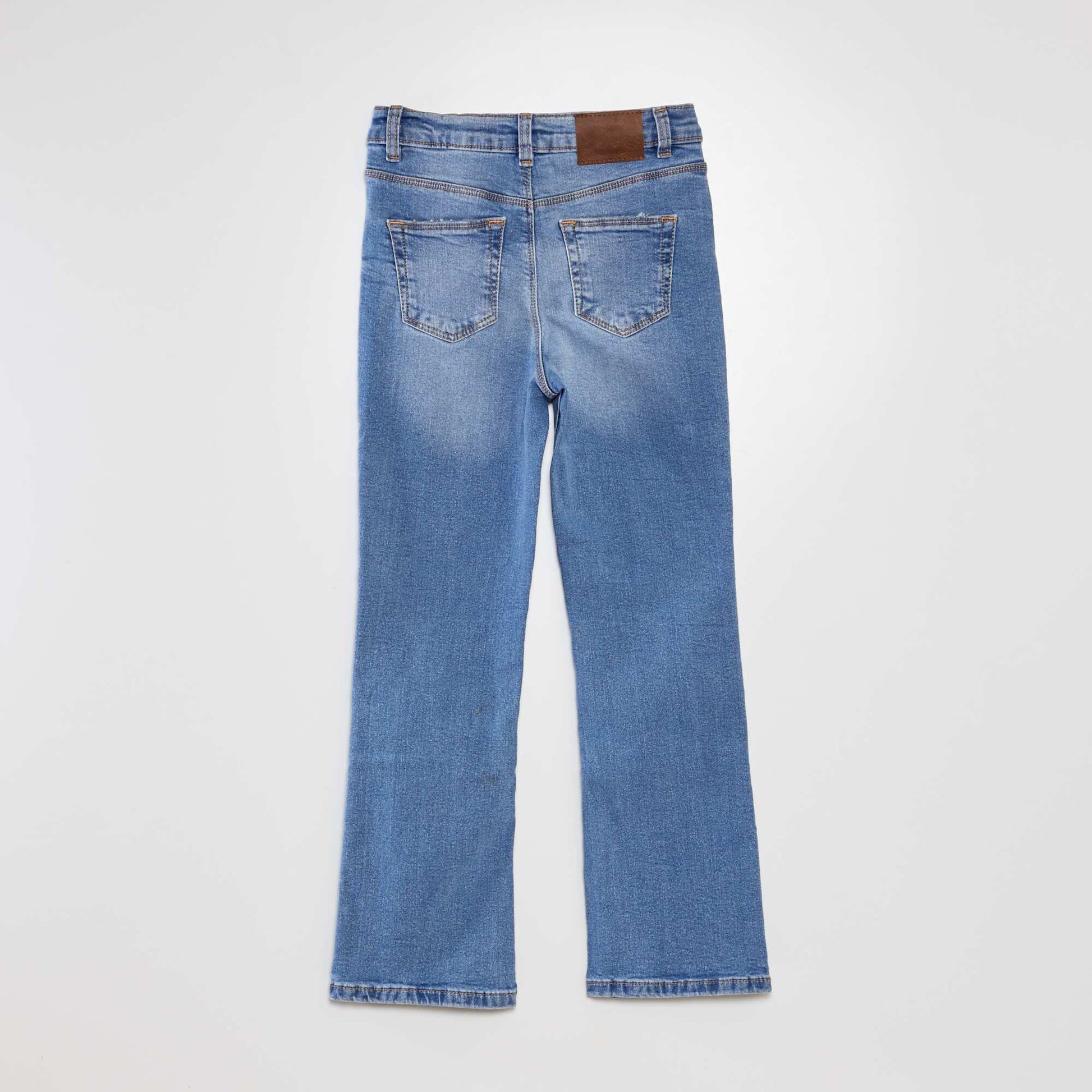 Un jean flare au top de la tendance ! - Pantalon en denim - Coupe flare - Ouverture pressionn e et zipp e devant - Passants pour ceinture - 2 poches devant + 1 poche ticket - 2 poches au dos - Couleur unie