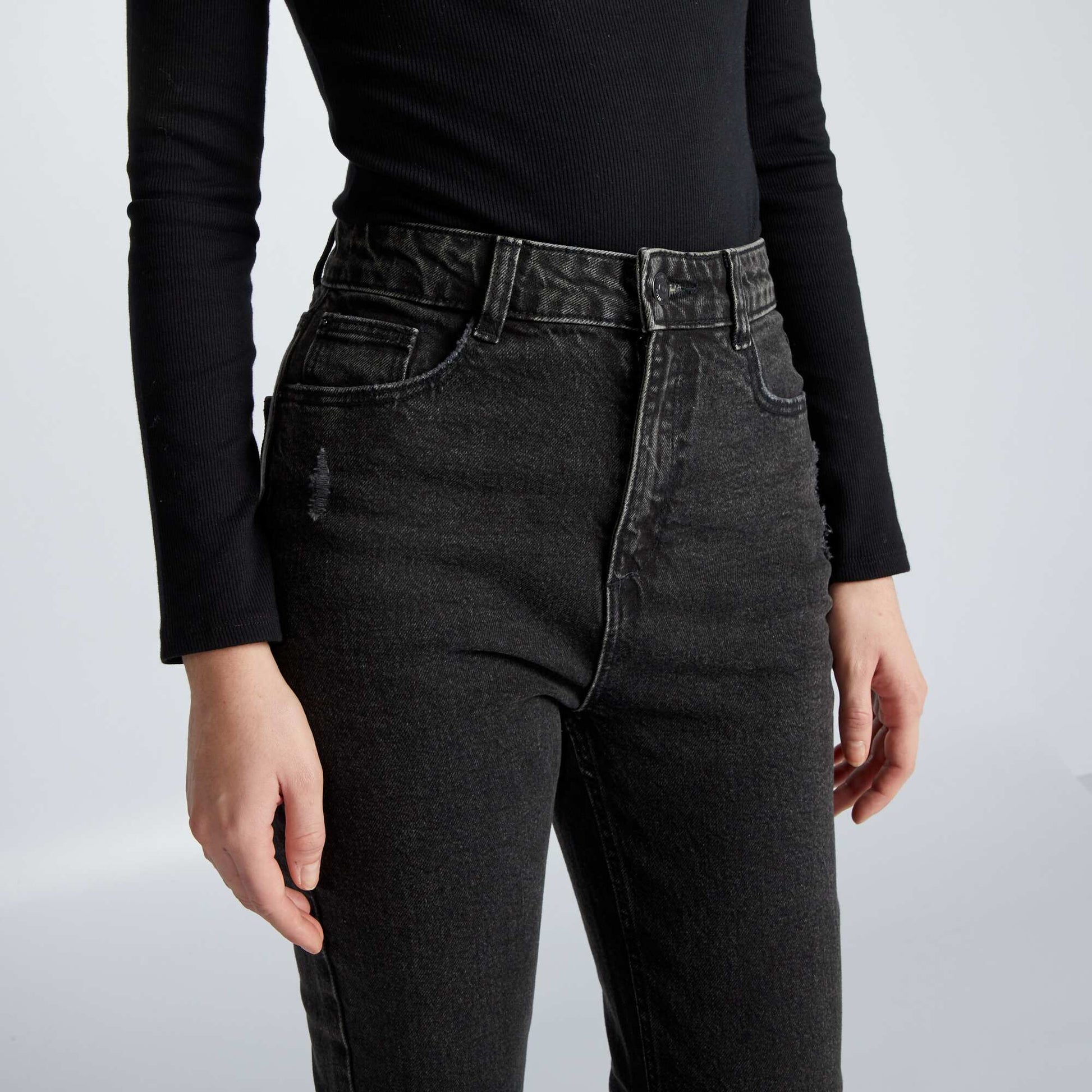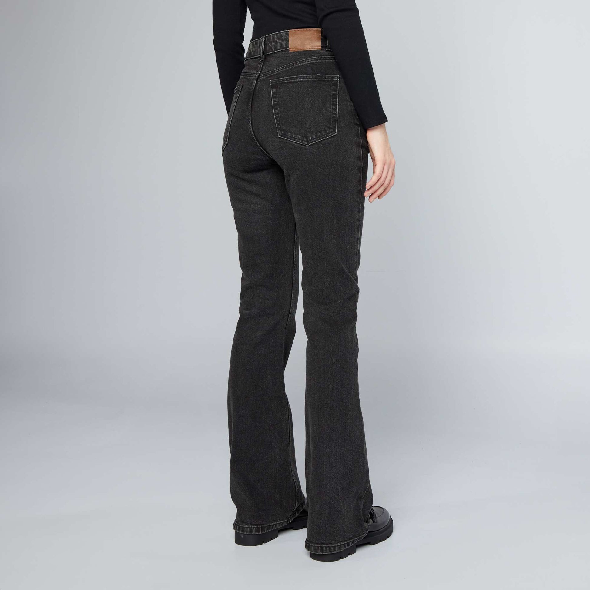 La coupe flare/bootcut et LA tendance du moment ! Venez vite d nicher ce jean sur Kiabi.com - Jean taille haute - Mati re l g rement stretch - Coupe flare/bootcut - Ouverture zipp e + bouton - Passants pour ceinture - 2 poches plaqu es + 1 poche ticket devant - 2 poches surpiqu es au dos - Longueur entrejambe : 80 cm environ - Largeur bas de jambe : 24 cm environ En raison du proc d de teinture, le produit peut d gorger au lavage ou au porter. Nous ne recommandons pas de le porter avec d'autres produits de couleurs claires.