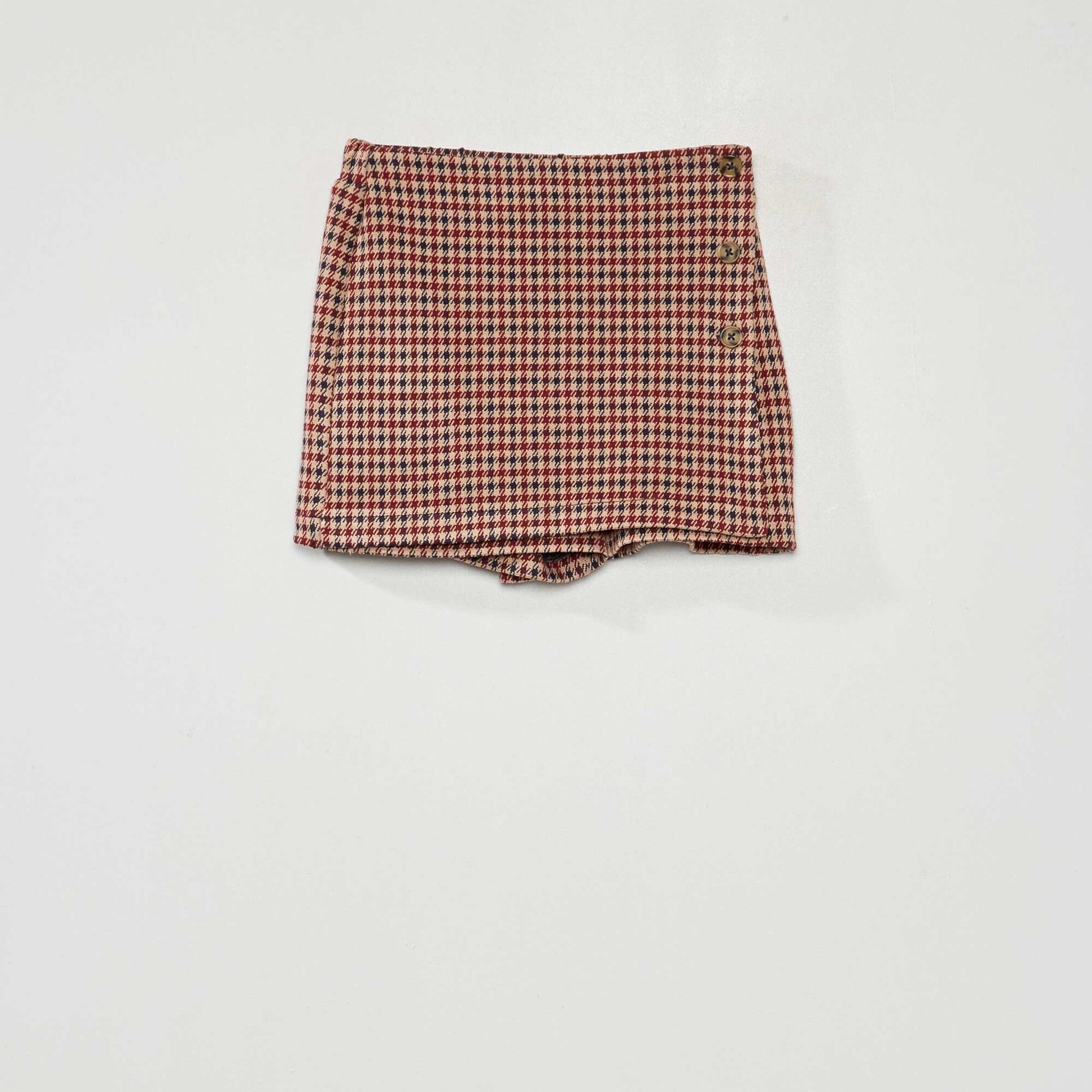 Une jupe fantaisie avec ses boutons, et sa maille douce à carreaux ! - Jupe en maille - Légèrement stretch - Taille élastiquée - Coupe façon portefeuille - Forme évasée - Boutons fantaisie (ouverture factice) - Motifs à carreaux