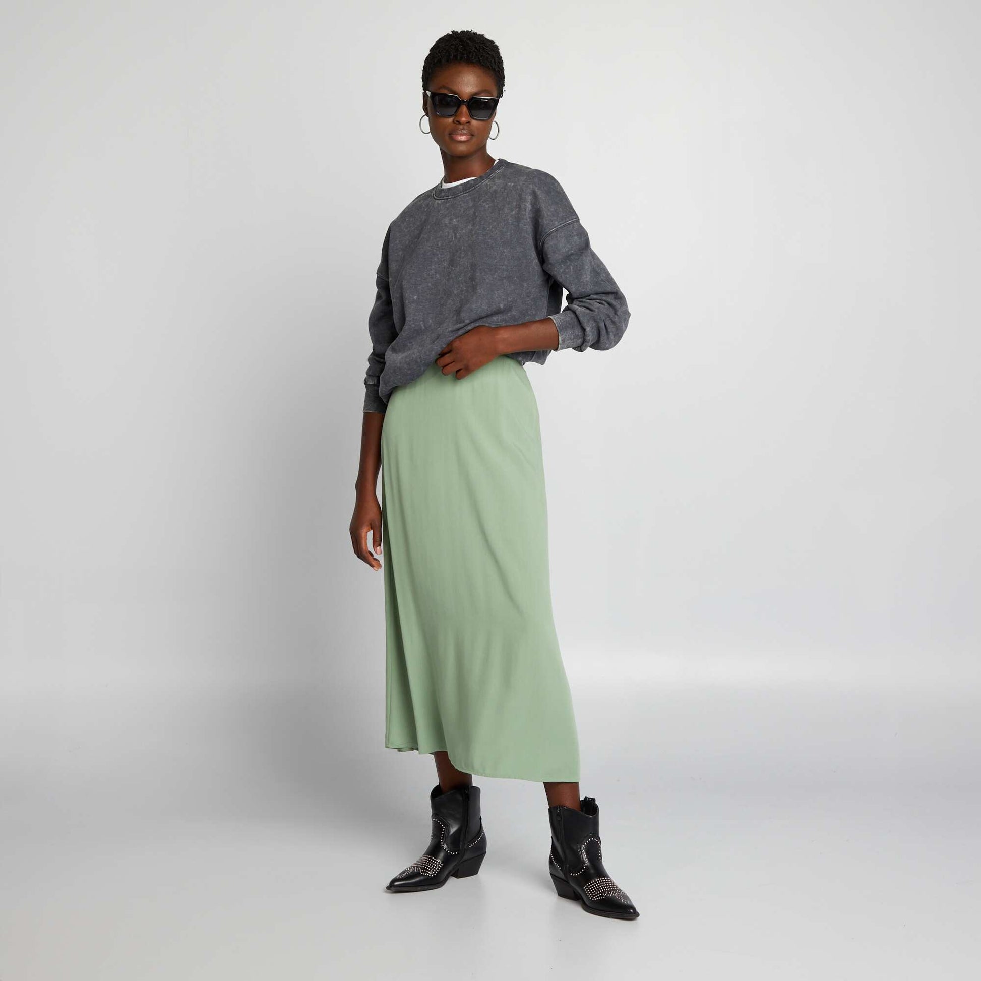 La jupe facile associer avec un tee-shirt coton ou une blouse unie ! - Jupe droite - Mati re fluide et l g re - Taille lastique - Coupe fluide - Longueur dos : 87 cm environ - Notre mannequin porte une taille M et mesure 1m75