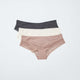 Lot de 3 shorties coton dentelle rose gris / cru/vert