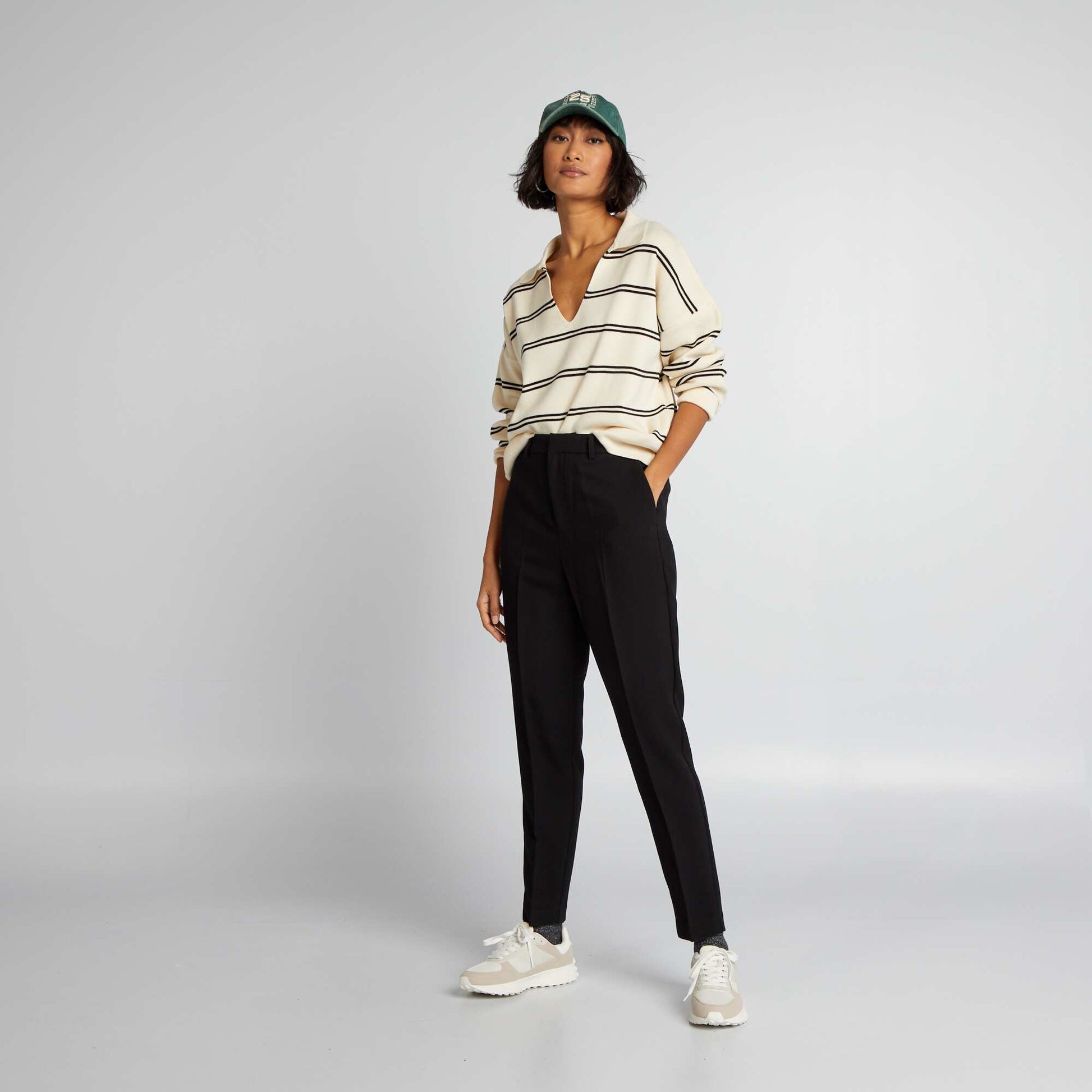 Un pantalon l gant porter pour toutes les occasions ! - Pantalon cigarette - Mati re fluide - Taille standard - Ouverture par crochet et zipp e - 2 poches - 1 poche factice l'arri re - Couleur unie - Longueur entrejambe : 70 cm environ - Largeur bas de jambe : 15 cm environ - Notre mannequin porte une taille 38 et mesure 1m75