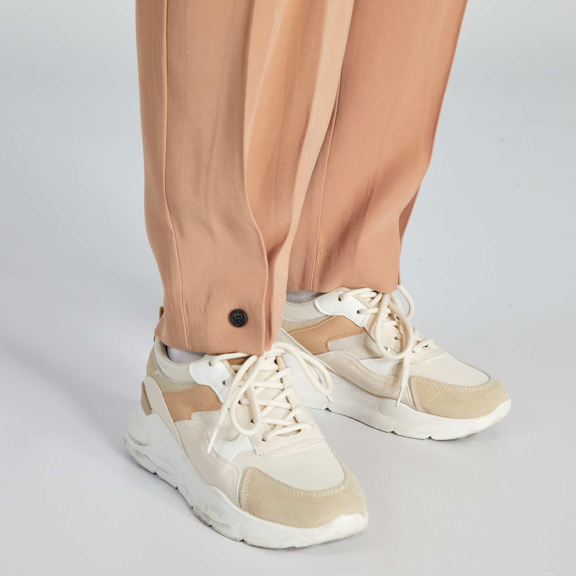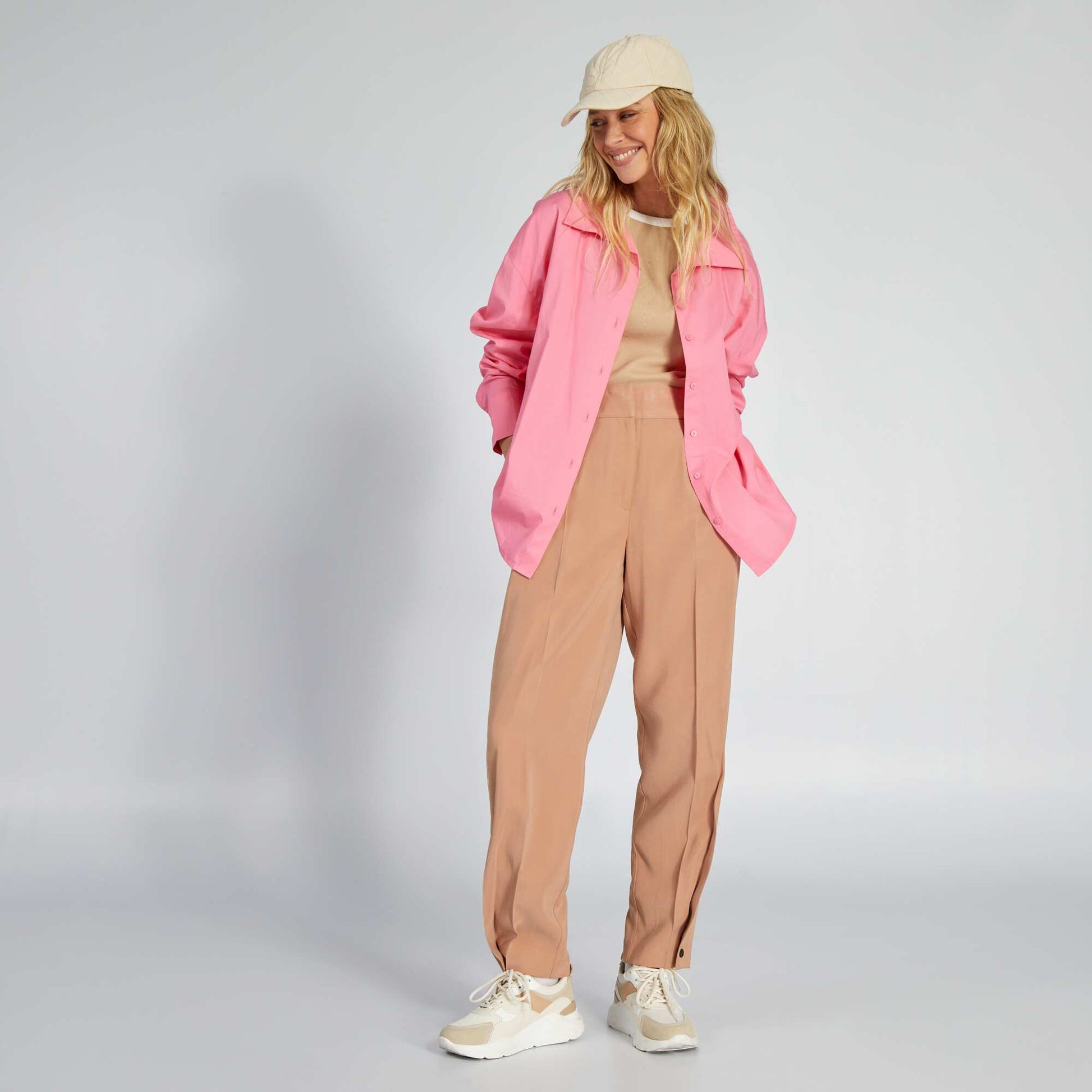 Un pantalon droit, avec une coupe carotte, taille haute. - Pantalon droit - Taille haute - Passants pour ceinture - Couleur unie - Longueur entrejambe : 70 cm environ - Largeur bas de jambe : 17 cm environ - Notre mannequin porte une taille M et mesure 1m75