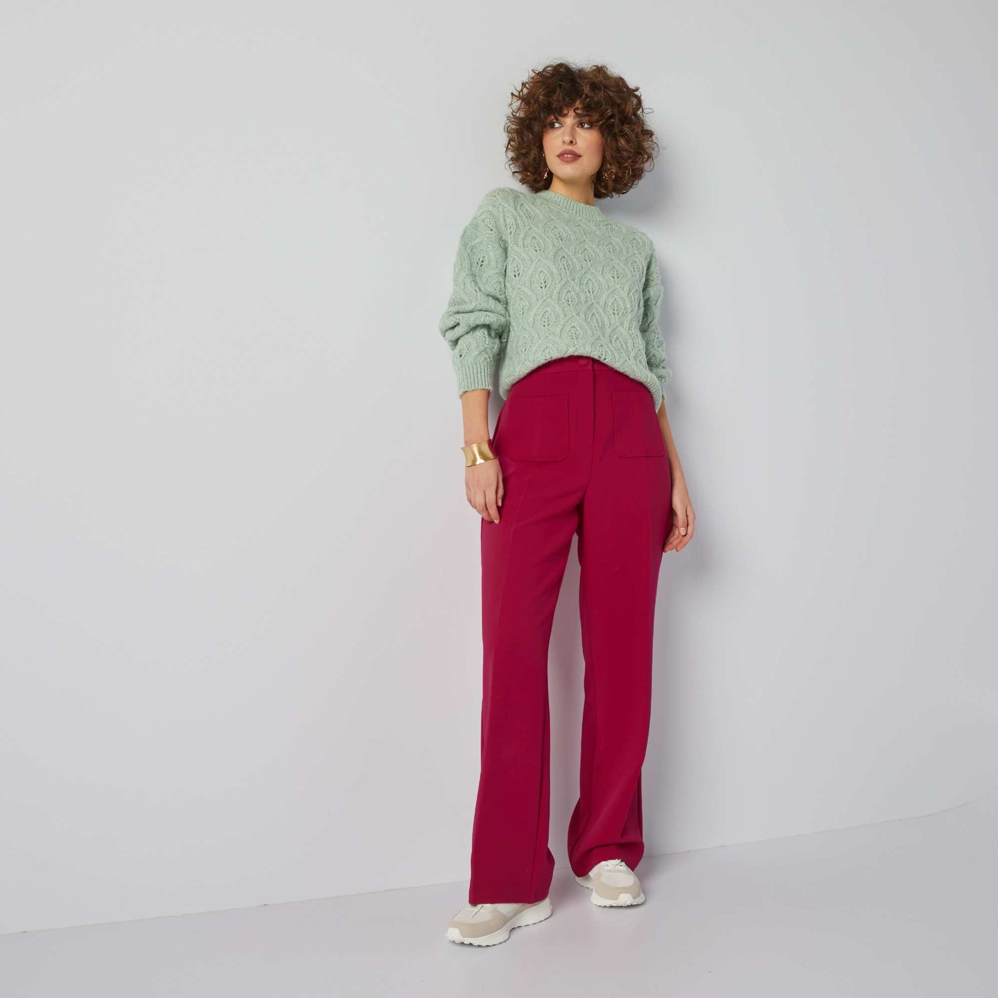 Un pantalon l gant et unique gr ce ses deux poches plaqu es ! - Pantalon droit - Ouverture boutonn e et zipp e devant - 2 poches plaqu es devant - Couleur unie - Longueur entrejambe : 80 cm environ - Largeur bas de jambe : 25 cm environ - Notre mannequin porte une taille 36 et mesure 1m74