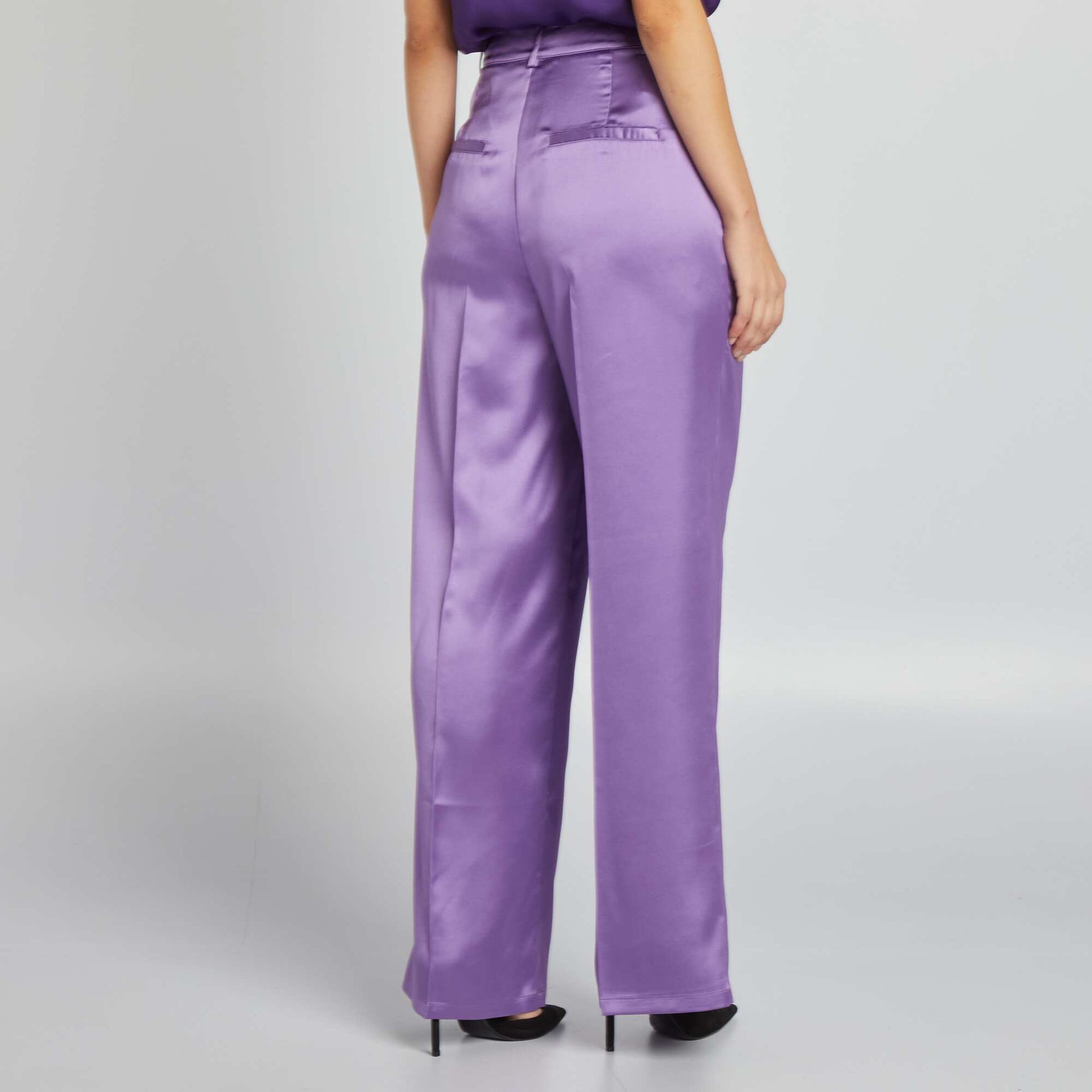 Ajoutez un peu de nouveaut votre garde robe et osez le total look satin ! - Pantalon en satin - Coupe large - Ouverture zipp e et boutonn e - Passants pour ceinture - Longueur entrejambe : 80 cm - Largeur bas de jambe : 30 cm - Notre mannequin porte une taille M et mesure 1m75 - Conseil mode : Pensez associer ce sublime pantalon avec la veste assortie (r f : AZU23, sous r serve de disponibilit )