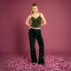 Le pantalon flare à l'esprit fêtes qui se pare de sequins. - Pantalon de fêtes - Coupe flare / droite - A sequins - Taille smockée - Doublure intérieure satinée - Longueur entrejambe : 80 cm environ - Largeur bas de jambe : 19 cm environ - Notre mannequin porte une taille S et mesure 1m70