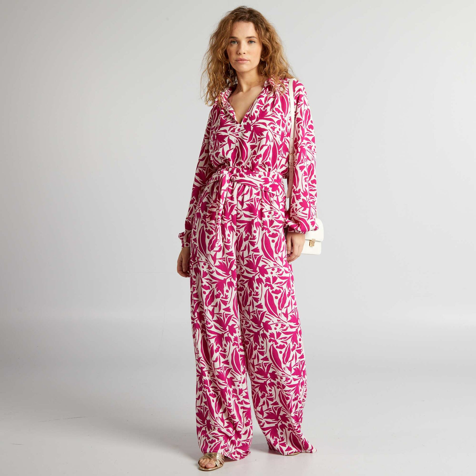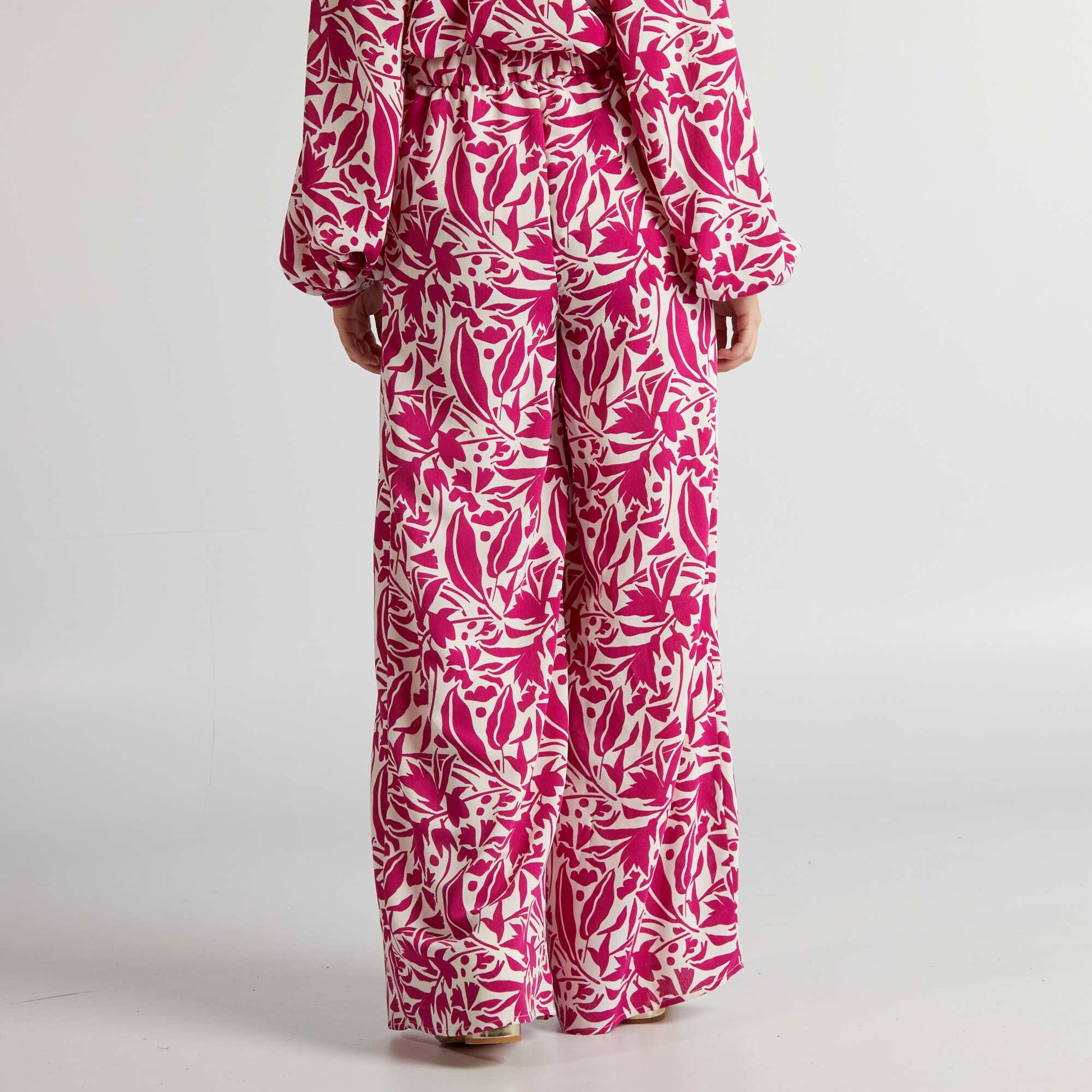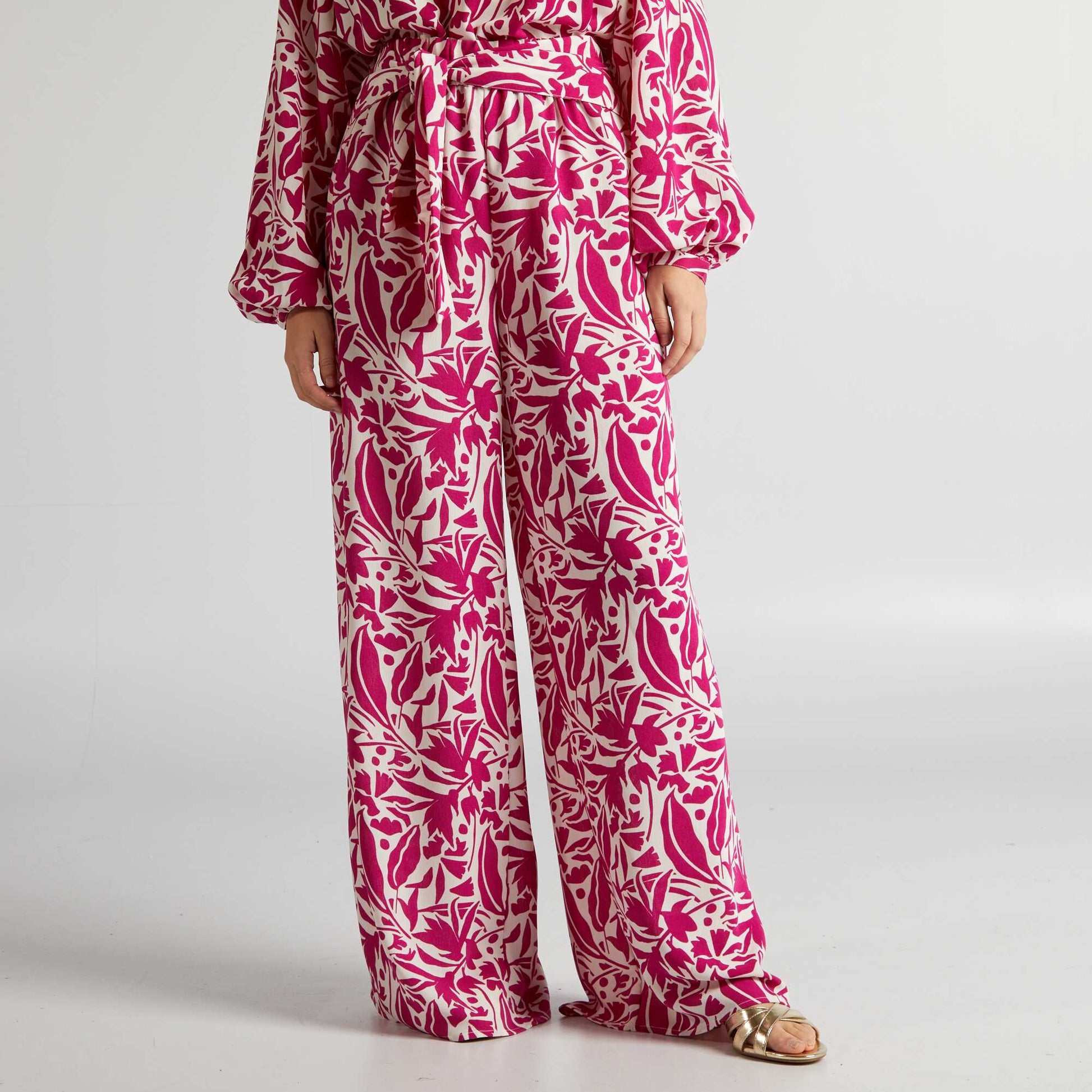 Ce pantalon large sera agr able porter gr ce sa fluidit , et on adore son imprim fleuri ! - Pantalon large - Fluide et l ger - Taille lastiqu e avec n ud fantaisie - Imprim fleuri all over - Notre mannequin porte une taille M et mesure 1m75