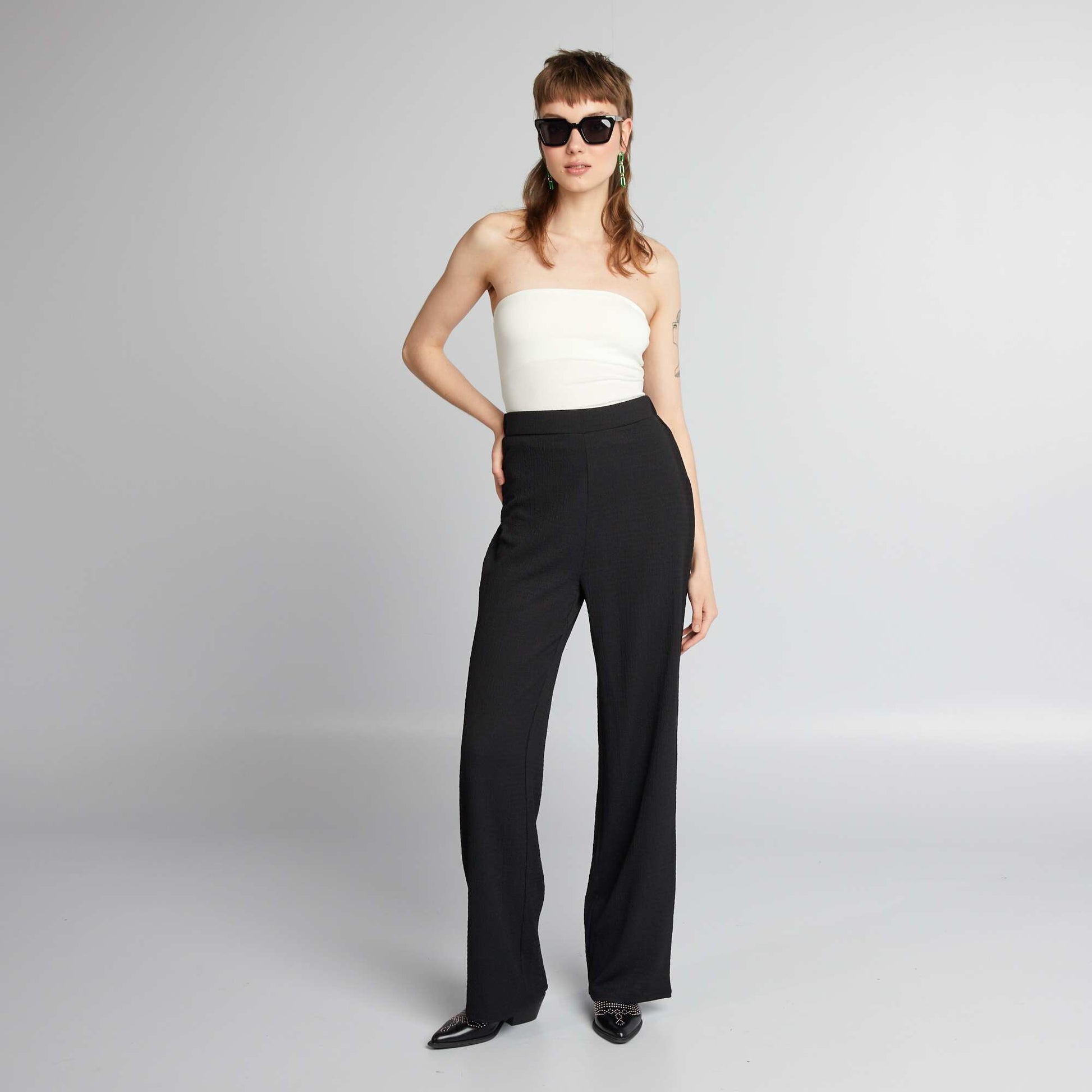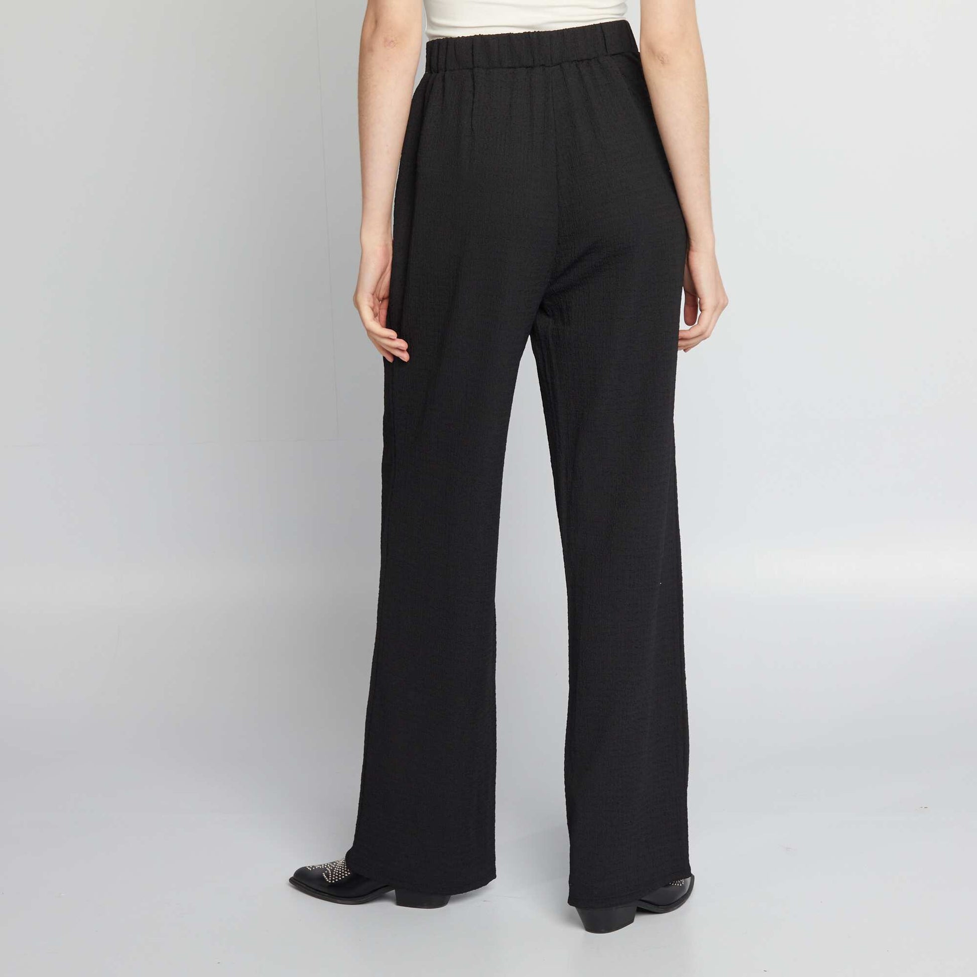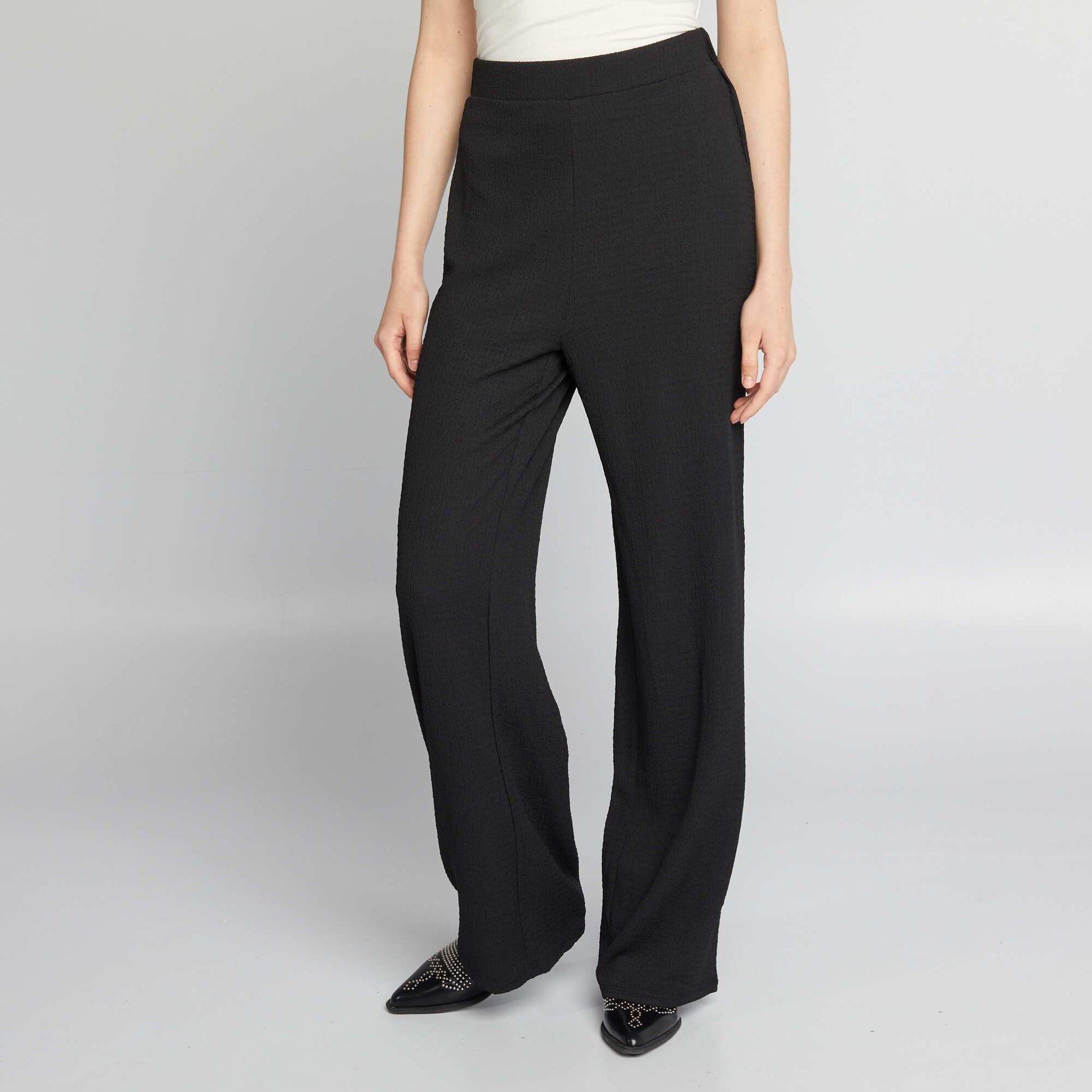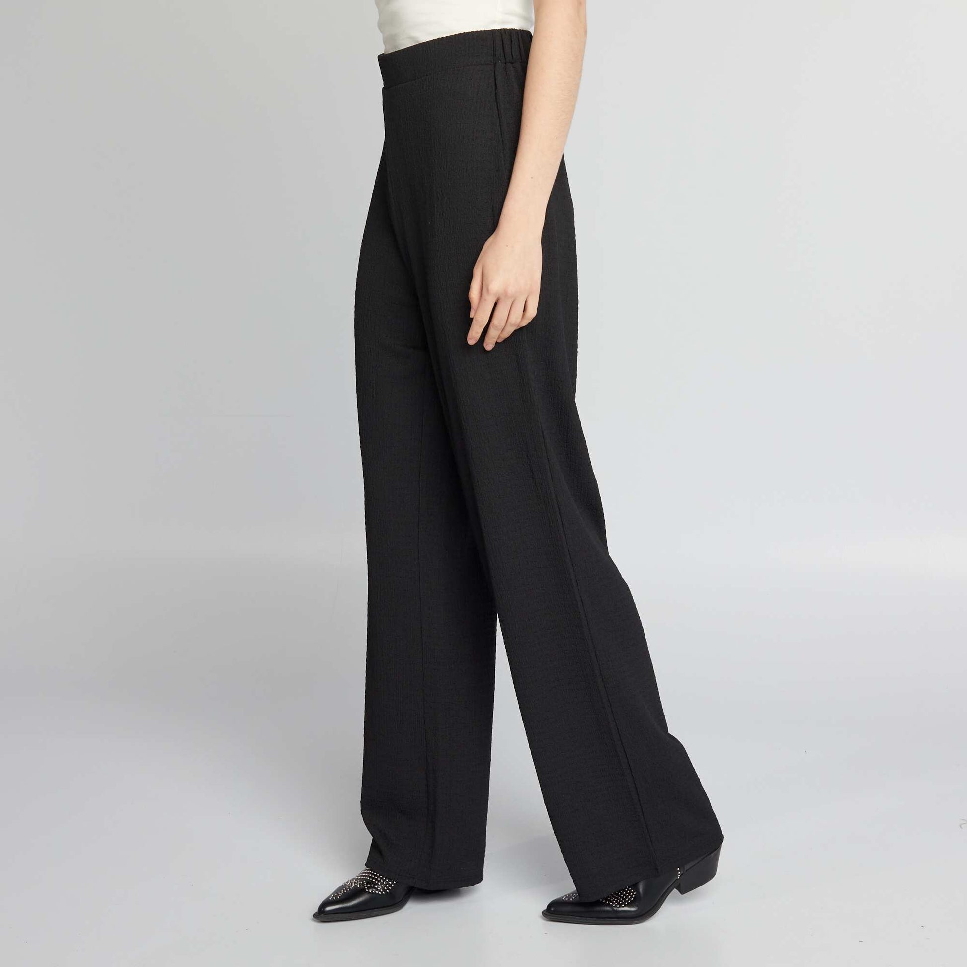 Un pantalon large en mati re gaufr e ! - Pantalon large - Mati re gaufr e - Taille lastiqu e - Longueur entrejambes : 82 cm environ - Longueur bas de jambes : 27 cm environ - Notre mannequin porte une taille S et mesure 1m76