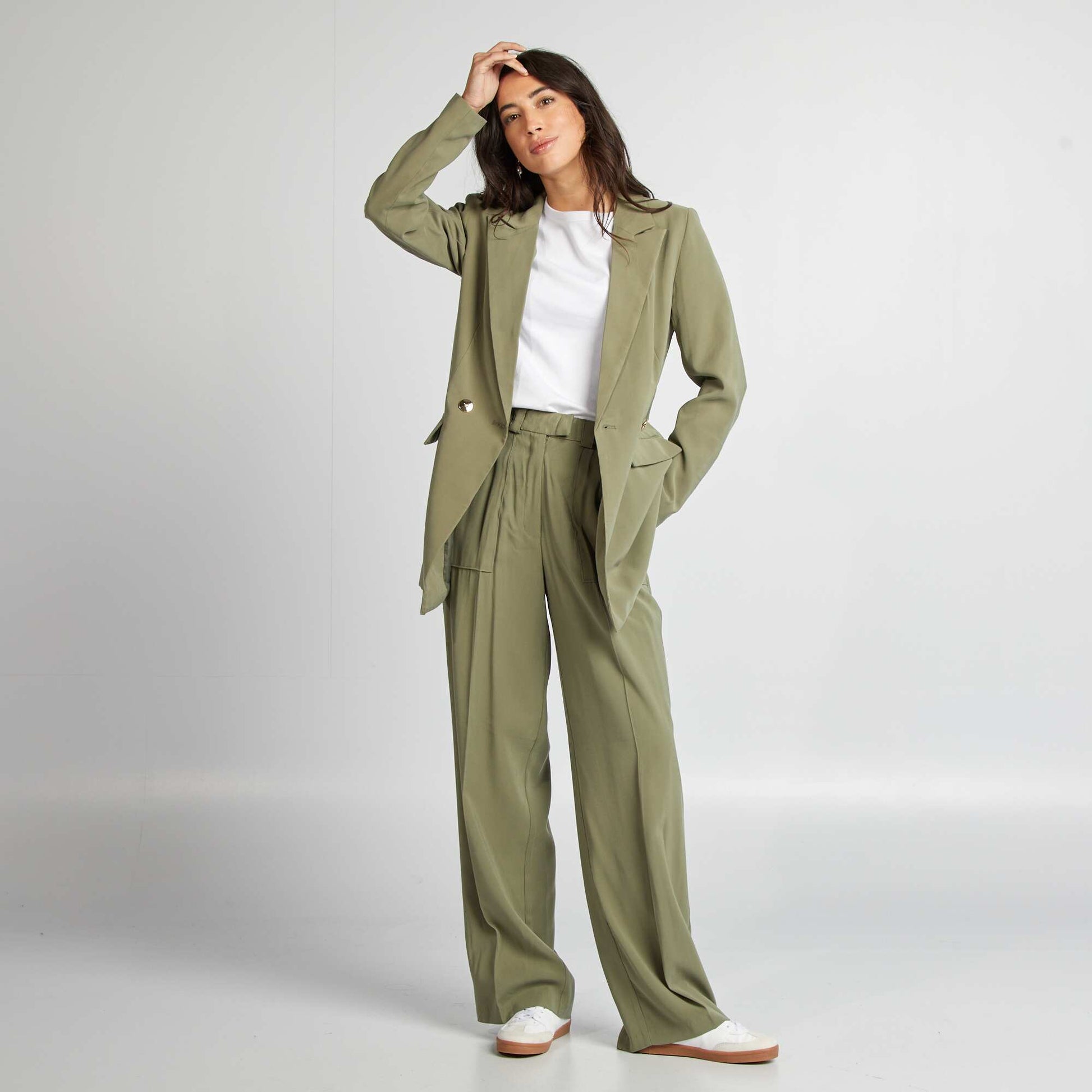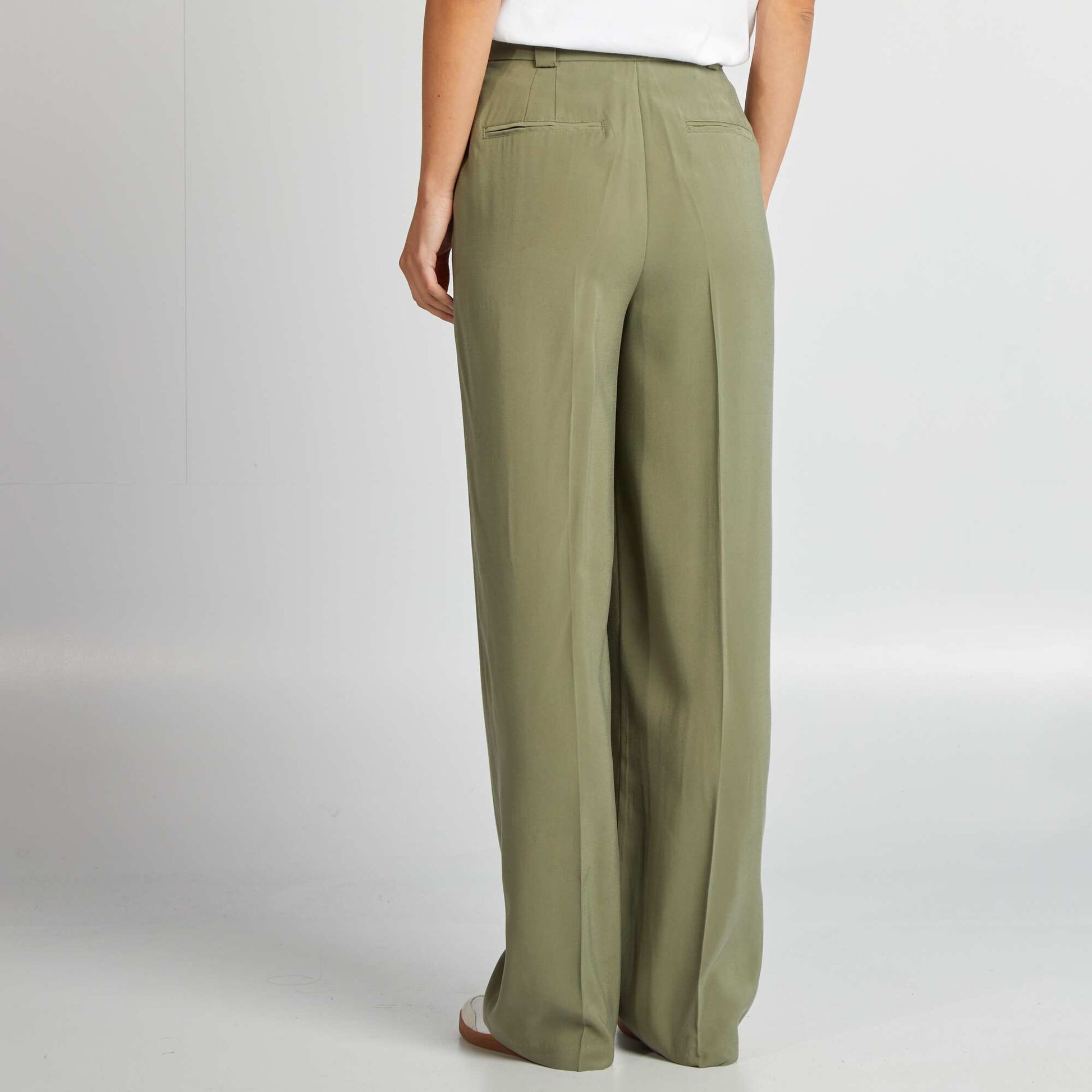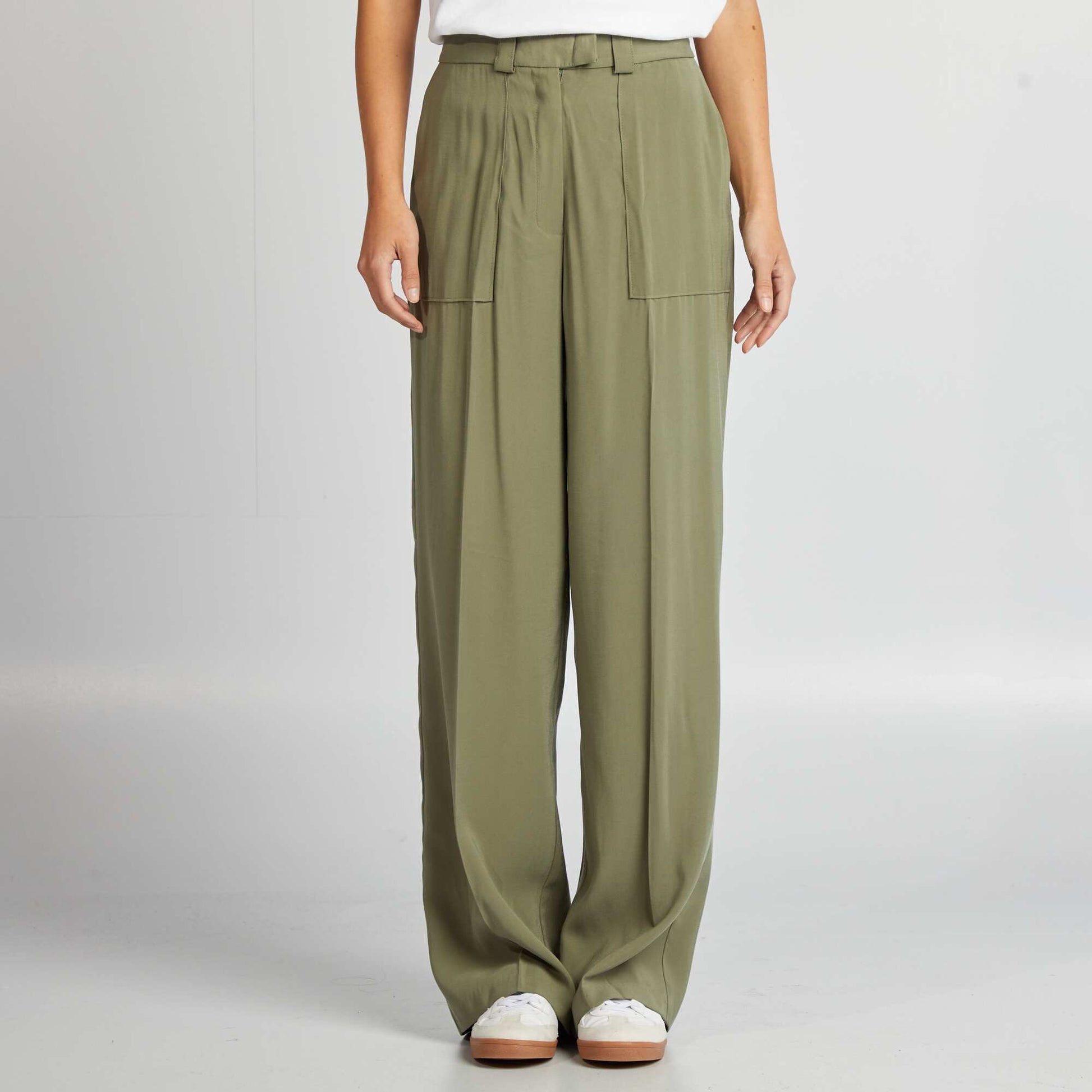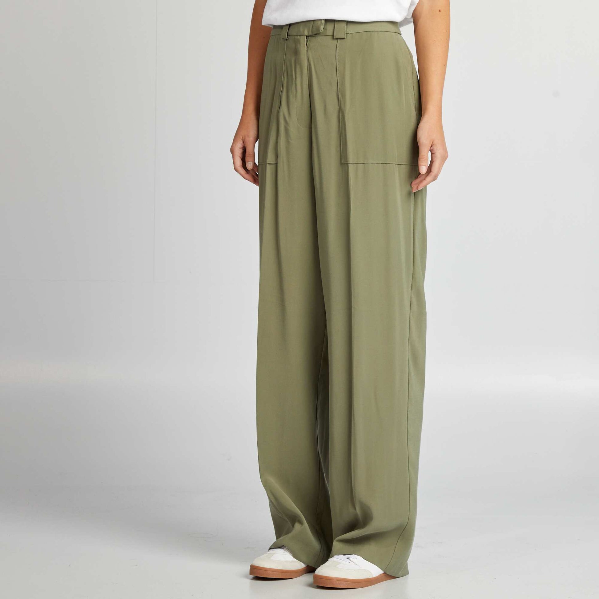 Id al pour les journ es de bureau ou les occasions sp ciales ce pantalon large style tailleur en twill ! - Pantalon large style tailleur - Taille haute - Ouverture zipp e et crochet - Passants pour ceinture - 2 poches devant - 2 poches passepoil es au dos - Couleur unie - Longueur entrejambe : 80 cm environ - Largeur bas de jambe : 27 cm environ - Notre mannequin porte une taille 36 et mesure 1m75
