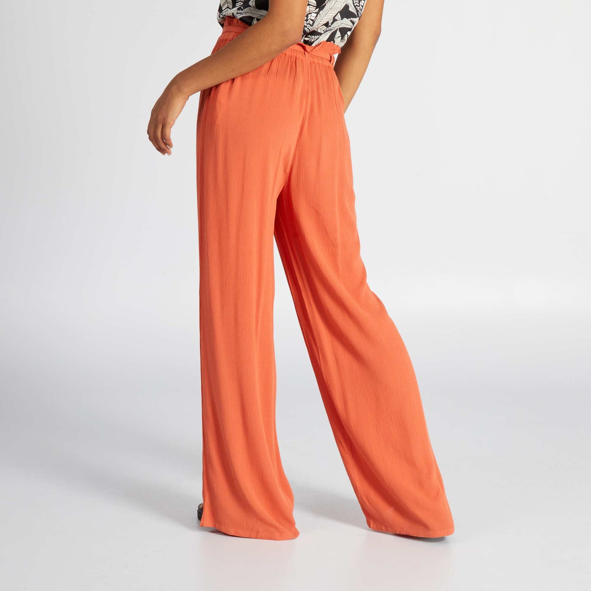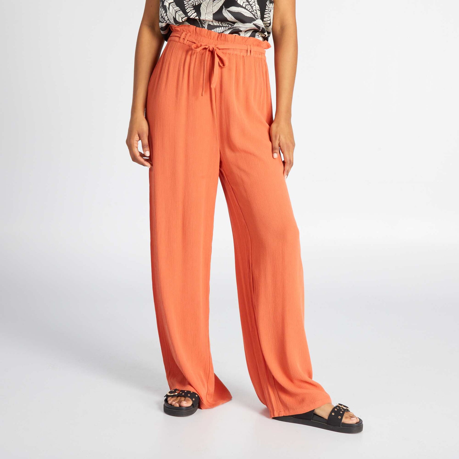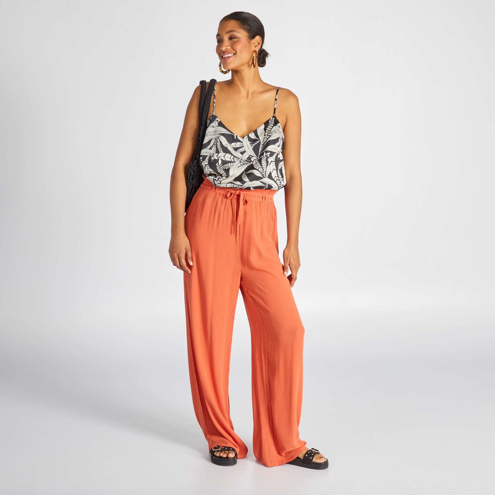 Con u pour tre avant tout d contract avec sa coupe large et son style loose, ce pantalon se veut aussi tre une pi ce mode non n gligeable. Notamment pour adopter un look d contract lors de journ es o la temp rature monte. - Pantalon large - Coupe loose - Taille smock e - Passants avec liens nouer - Longueur entrejambe : 75 cm environ - Largeur bas de jambe : 30 cm environ - Notre mannequin porte une taille M et mesure 1m75