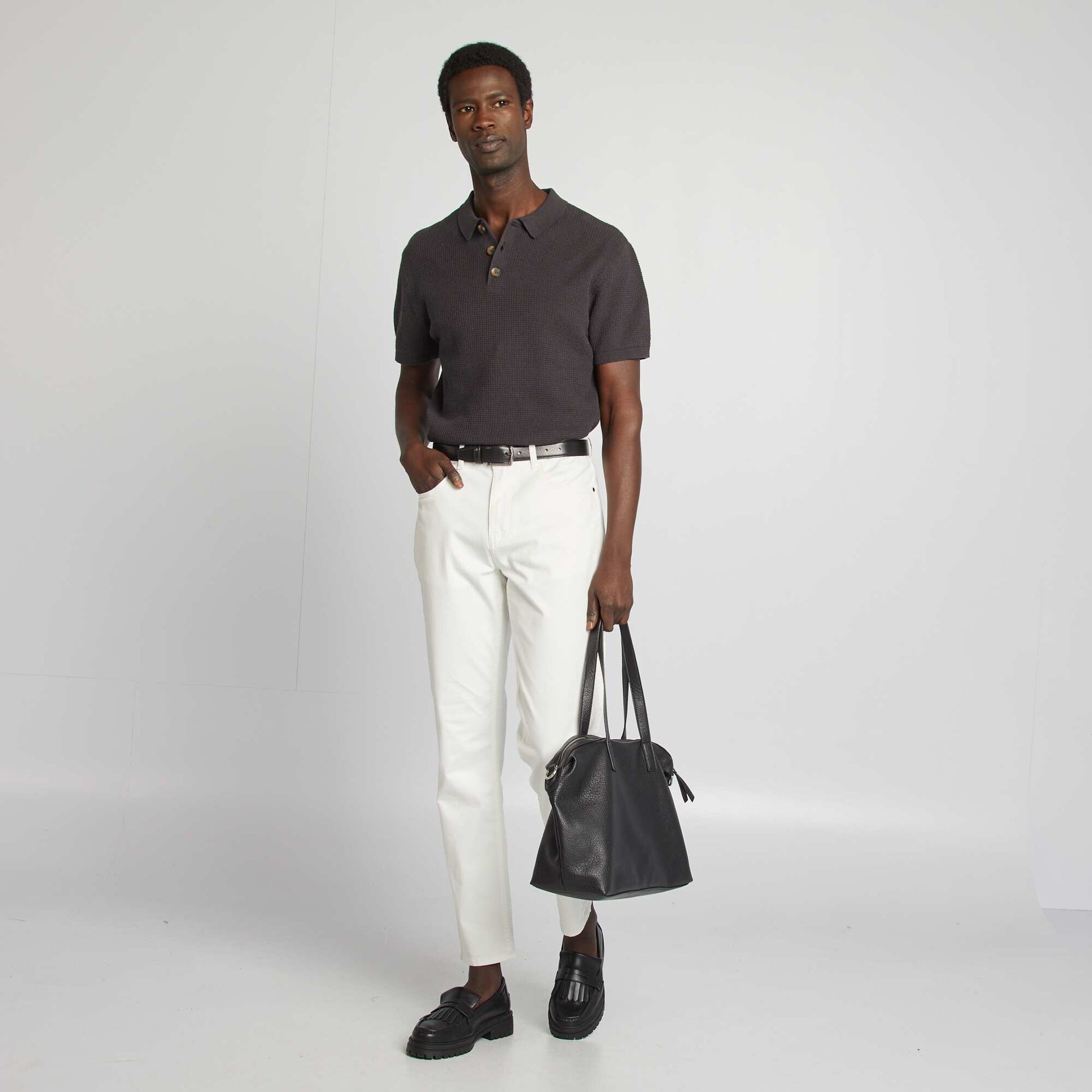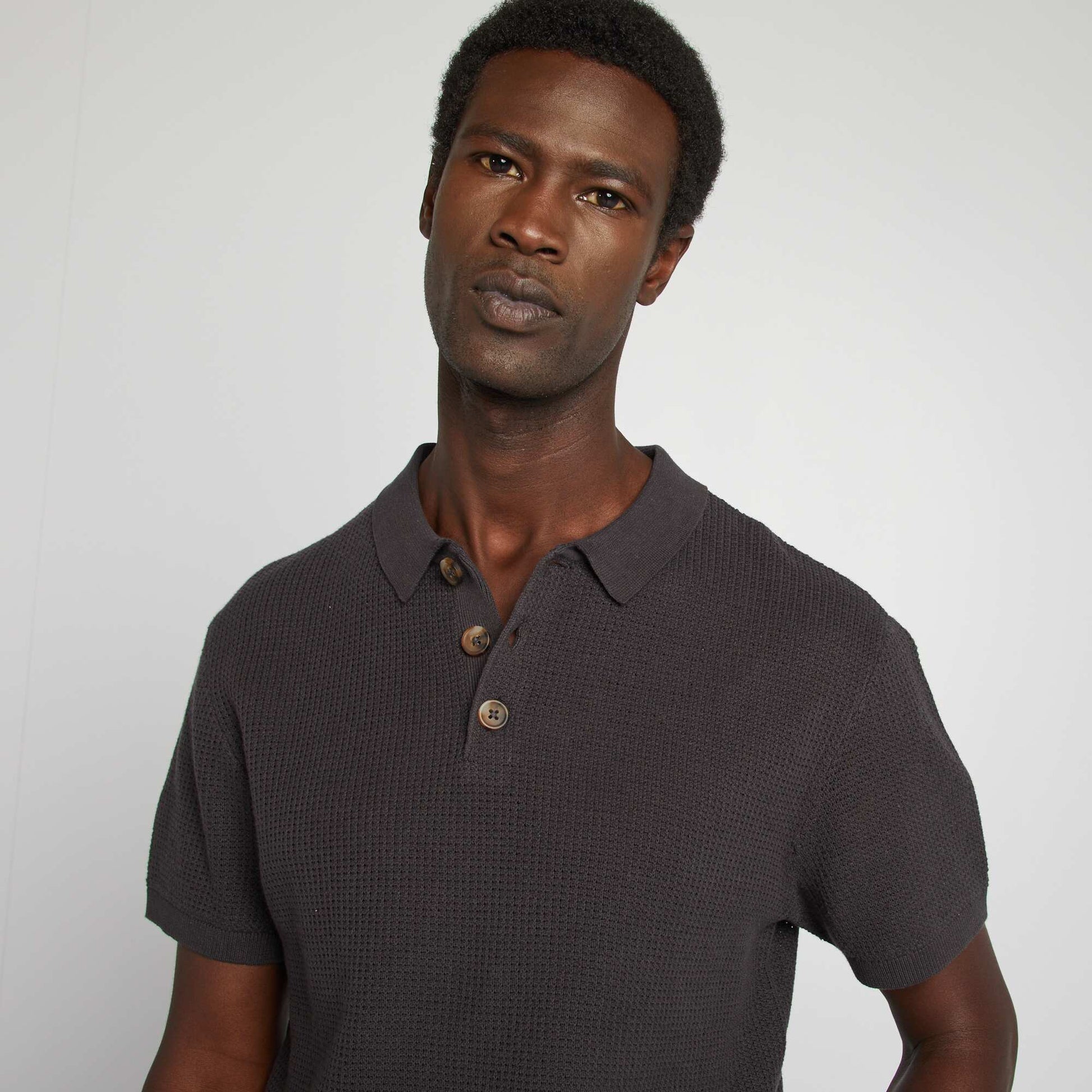 On veut de l'originalité à porter avec ce polo en maille tricot et sa maille ajourée pour un style tout en légèreté. - Polo en maille tricot - En coton - Maille légèrement irisée - Manches courtes - Col polo avec 3 boutons - Finitions bords-côtes - Longueur dos : 72 cm environ - Notre mannequin porte une taille M et mesure 1m88