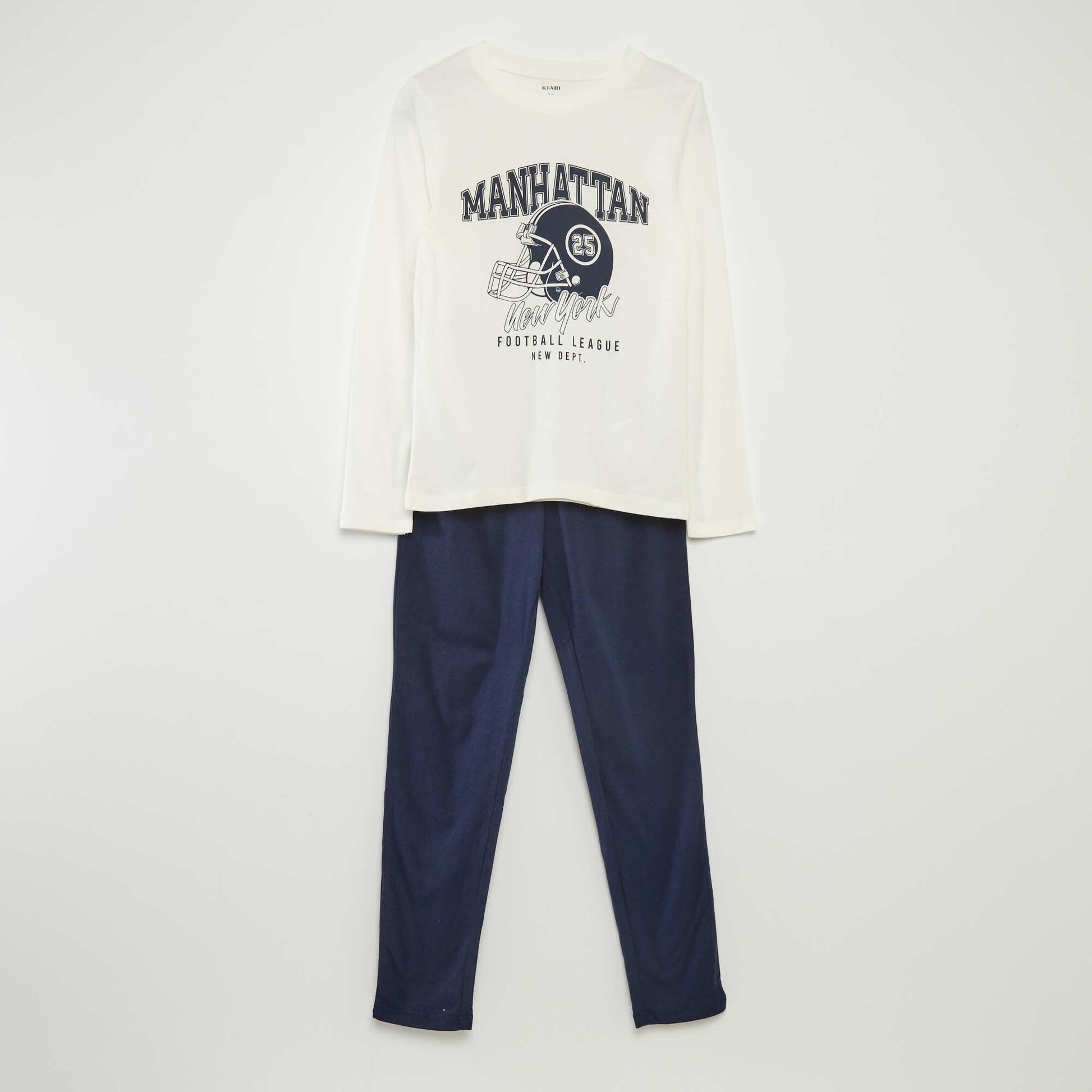 Pyjama long en jersey avec imprim - 2 pi ces Blanc/marine