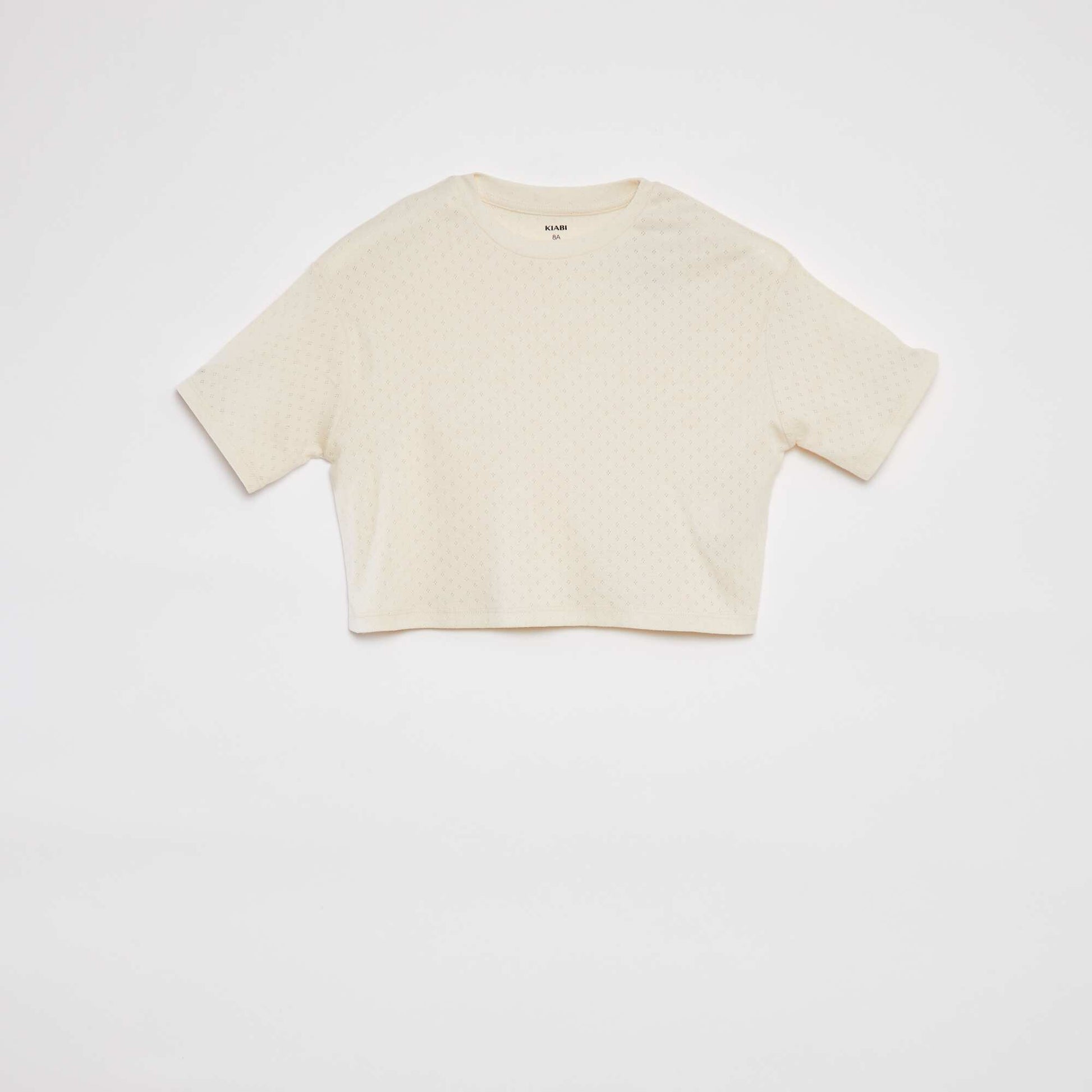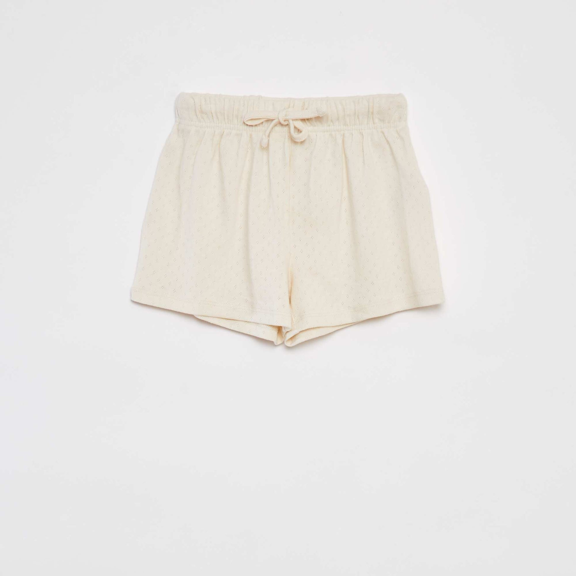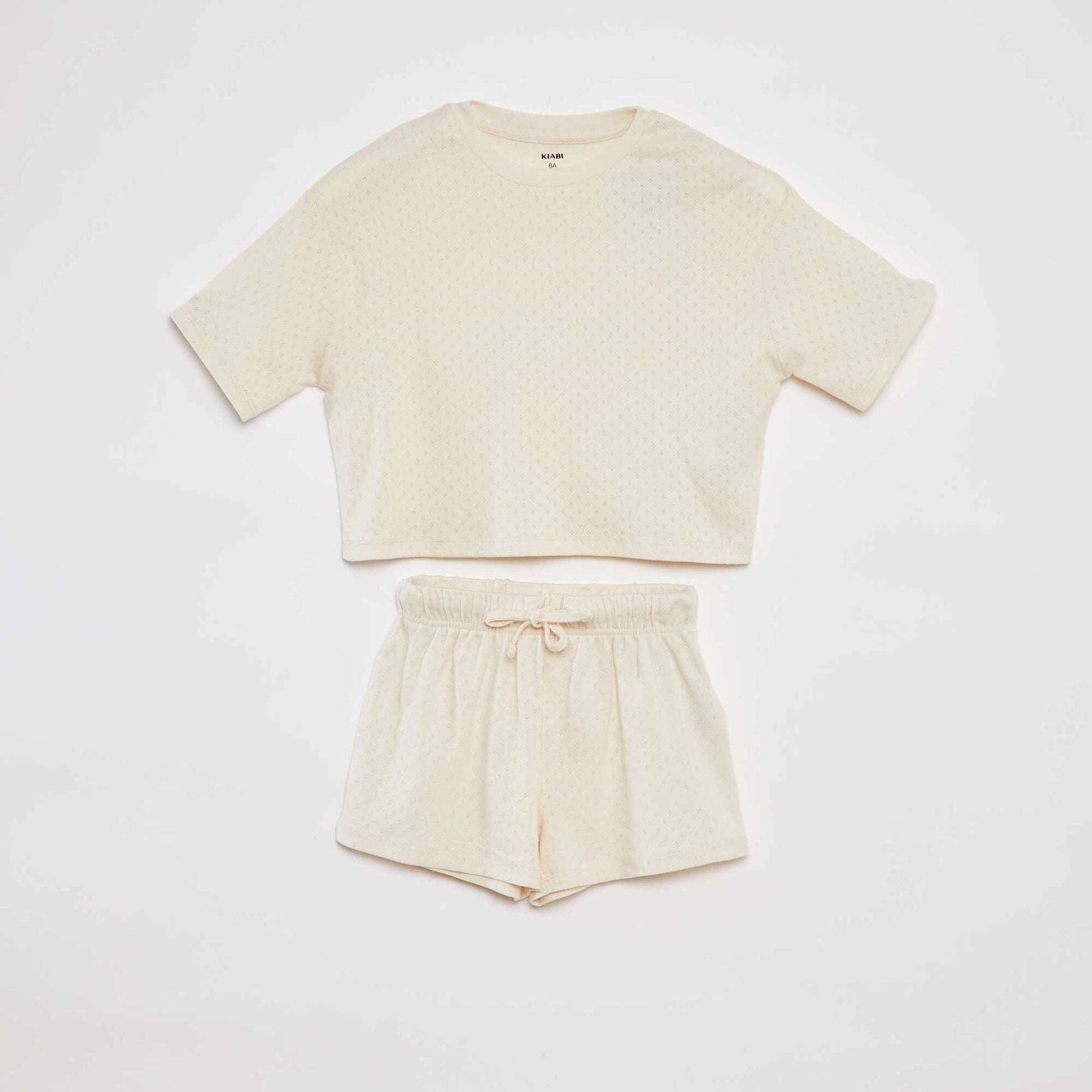 Un pyjama trop mimi avec sa maille pointelle ! - T-shirt - Maille pointelle - Col rond - Manches courtes - Short de pyjama assorti - Taille élastique