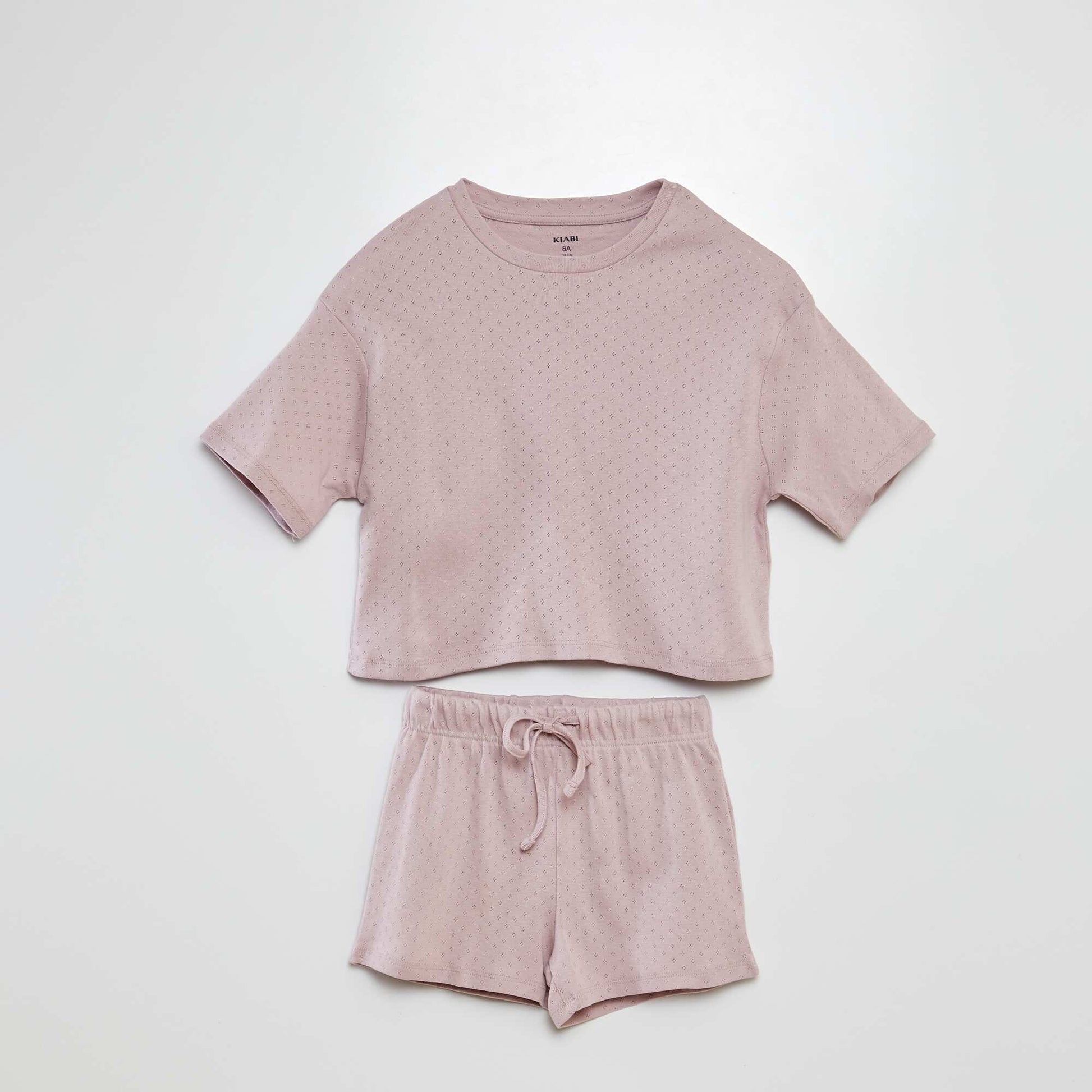 Un pyjama trop mimi avec sa maille pointelle ! - T-shirt - Maille pointelle - Col rond - Manches courtes - Short de pyjama assorti - Taille élastique