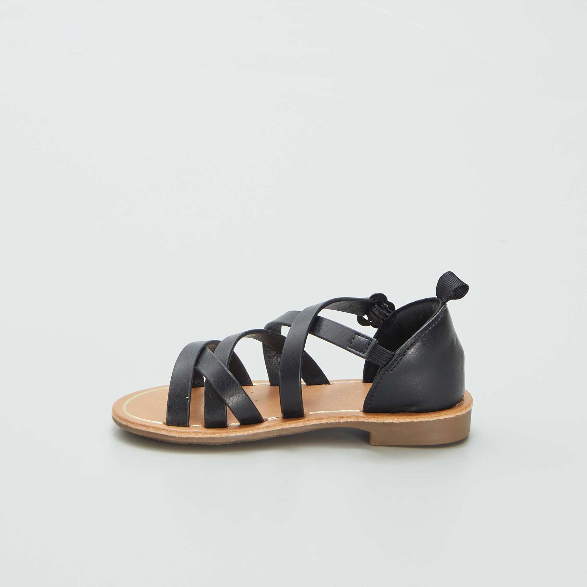 On aime : ce jeu de brides croisées ! - Sandales à multiples brides - En simili - Brides croisées - Talon fermé - Fermeture par boucle en acier - Semelle intérieure lisse - Semelle extérieure antidérapante - Petit talon