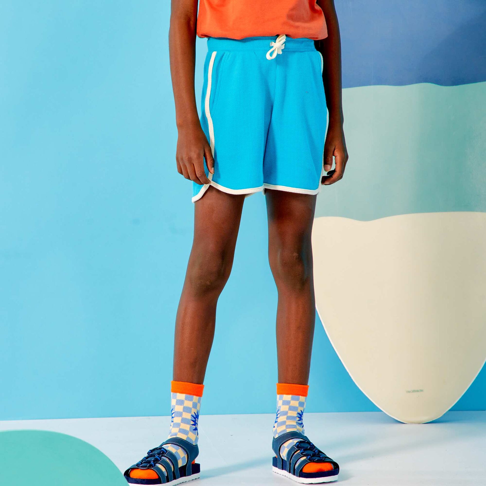 Un short en nid d'abeilles pour pratiquer le sport avec style ! - Short en nid d'abeilles - Cordon de serrage la taille - Biais contrastant - Deux poches lat rales :