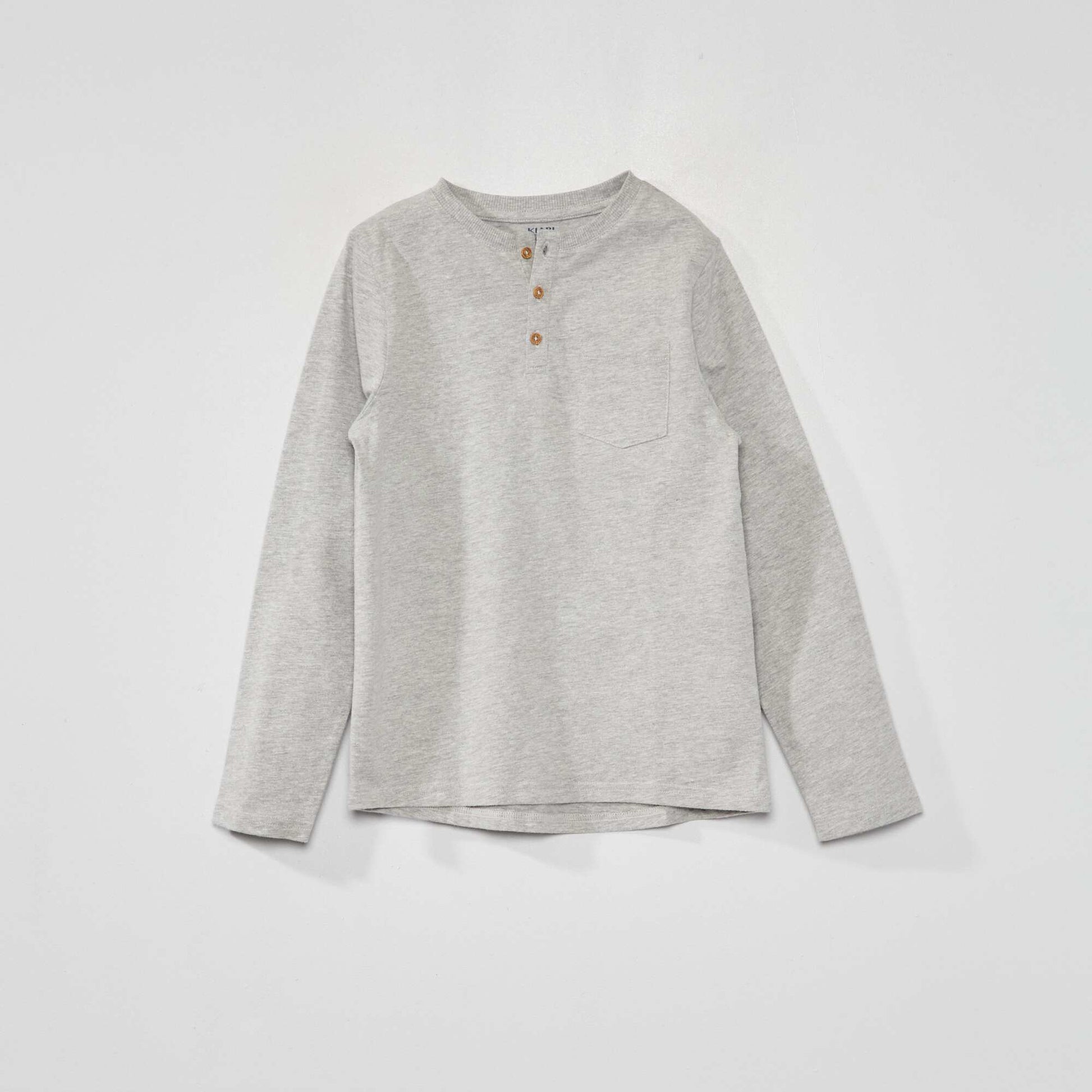 T-shirt col tunisien manches longues Gris