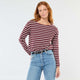 T-shirt en maille épaisse à manches longues ave rayures all-over ROUGE