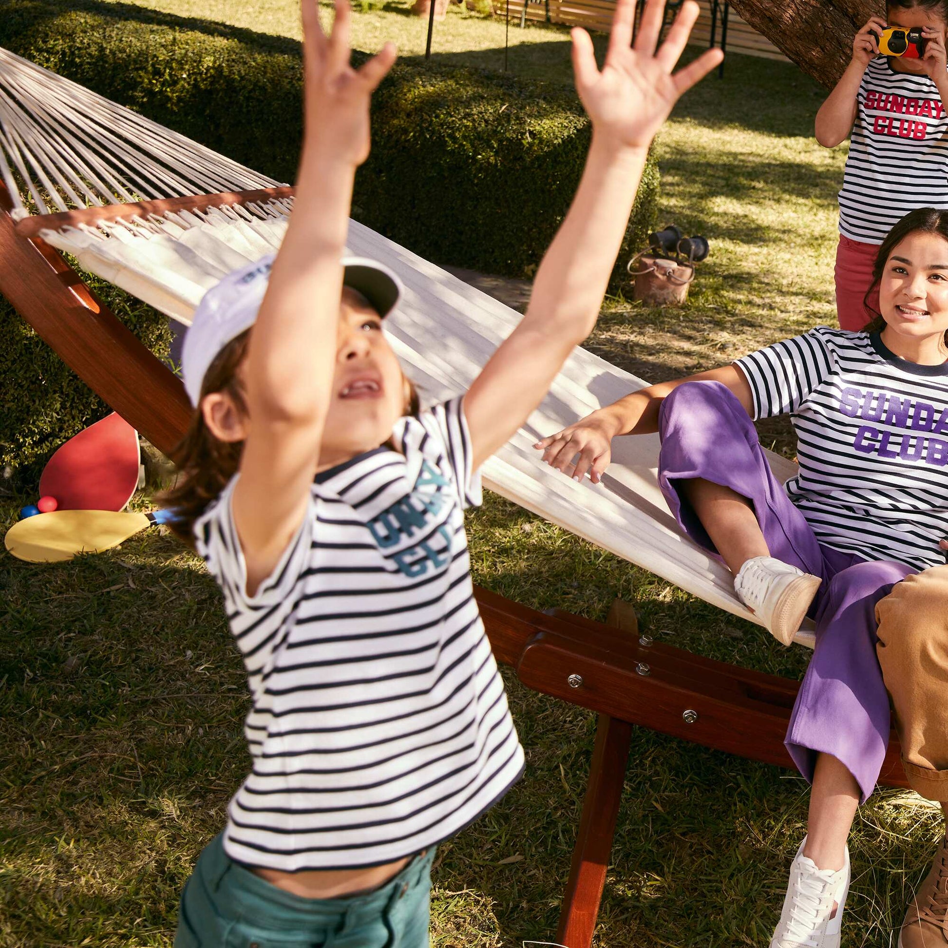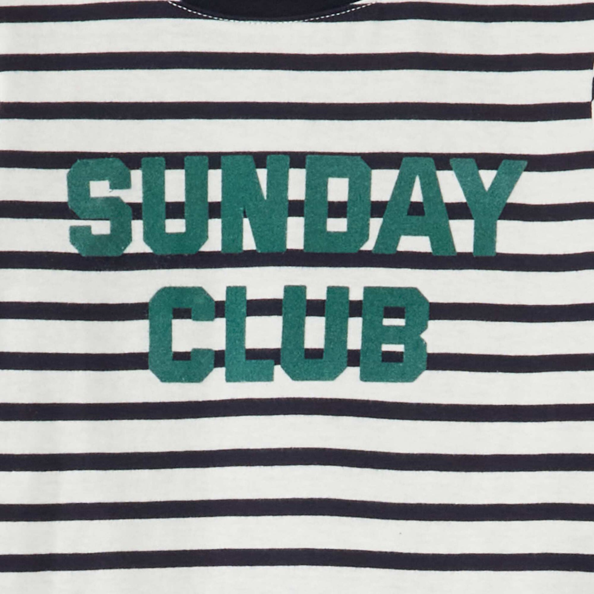 On adore son petit message ! - Tee-shirt ray - 100% coton - Manches courtes - Col rond - Message floqu 'Sunday club'