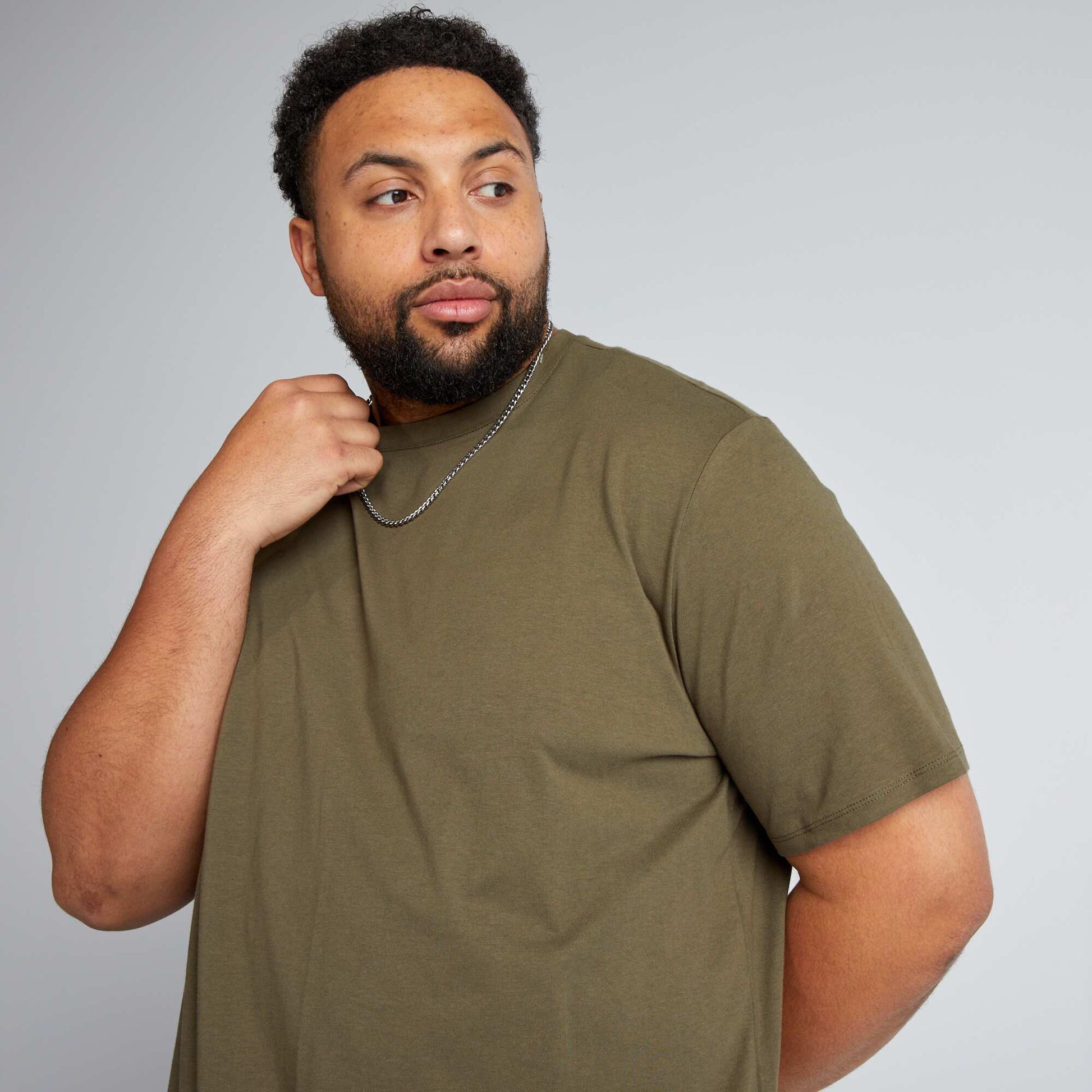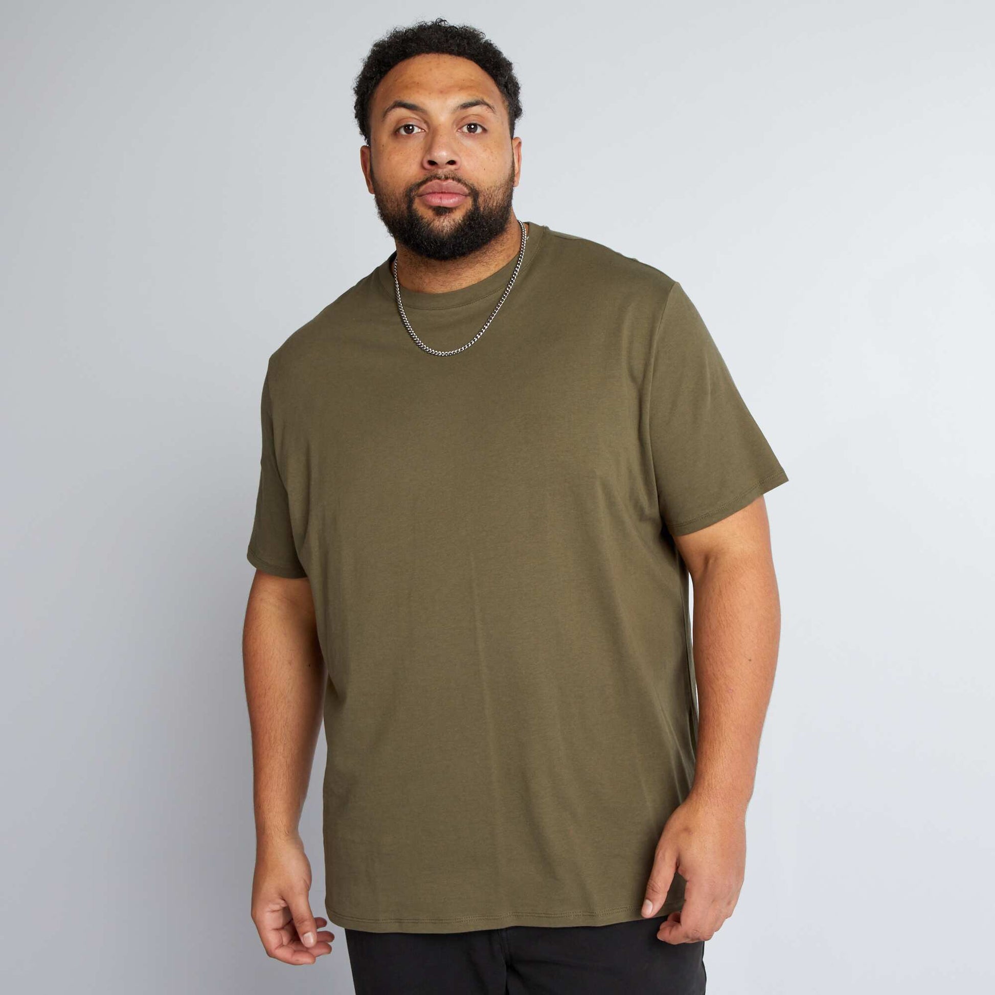 Un basique à avoir dans son dressing, simple et efficace pour un look bien soigné ! - T-shirt en maille jersey - Regular fit / coupe droite - Col rond - Manches courtes - Longueur dos : 80 cm - Notre mannequin porte une taille 3XL et mesure 1m87