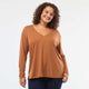 Simplicité, encolure V, subtil décolleté : le combo parfait ! - Tee-shirt basique - En maille fluide - Manches courtes 3/4 - Large encolure en V - Longueur dos : 69 cm environ - Notre mannequin porte une taille XL et mesure 1m75