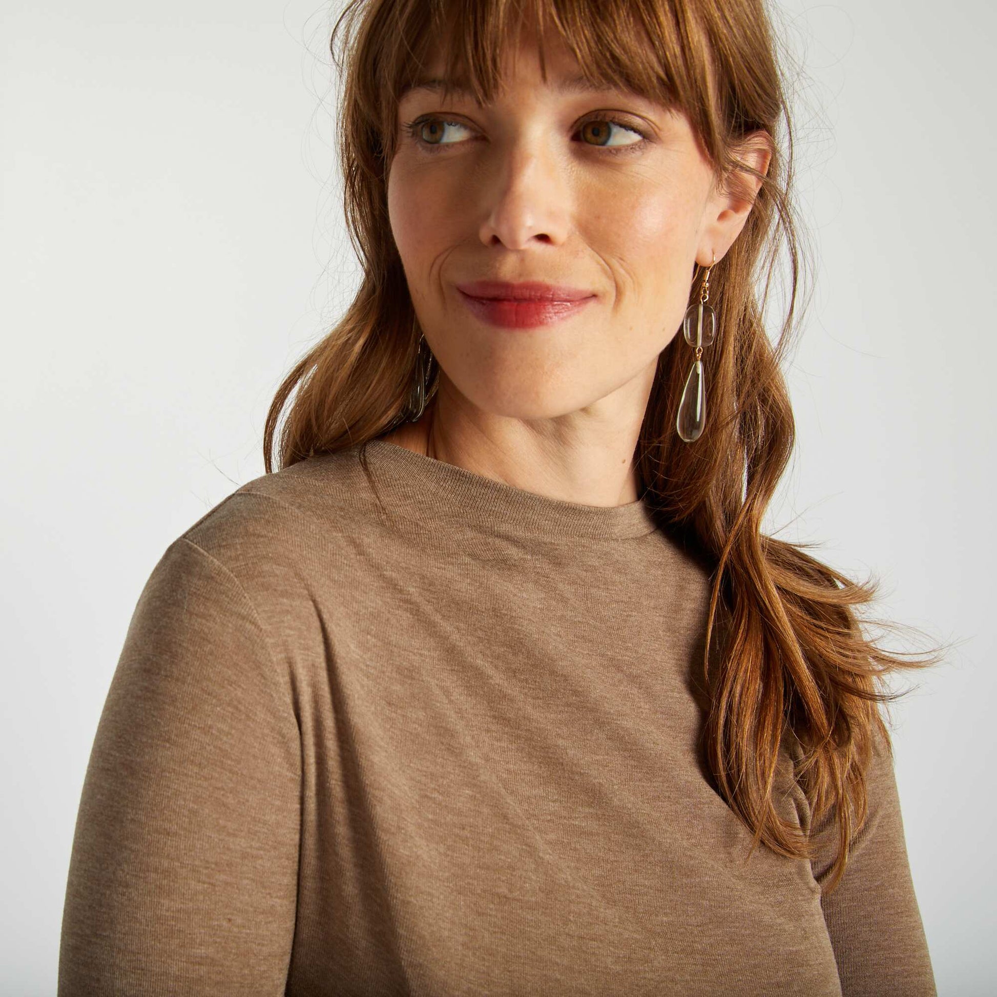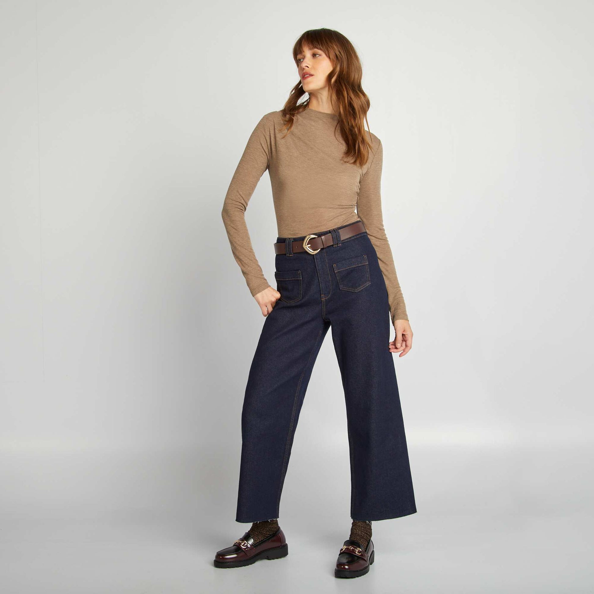 Il se combine parfaitement avec un pantalon taille haute pour un look à la fois tendance et féminin. - Tee-shirt crop top - Matière stretch - Manches longues - Encolure ronde - Effet drapé devant - Longueur dos : 54 cm environ - Notre mannequin porte une taille S et mesure 1m75