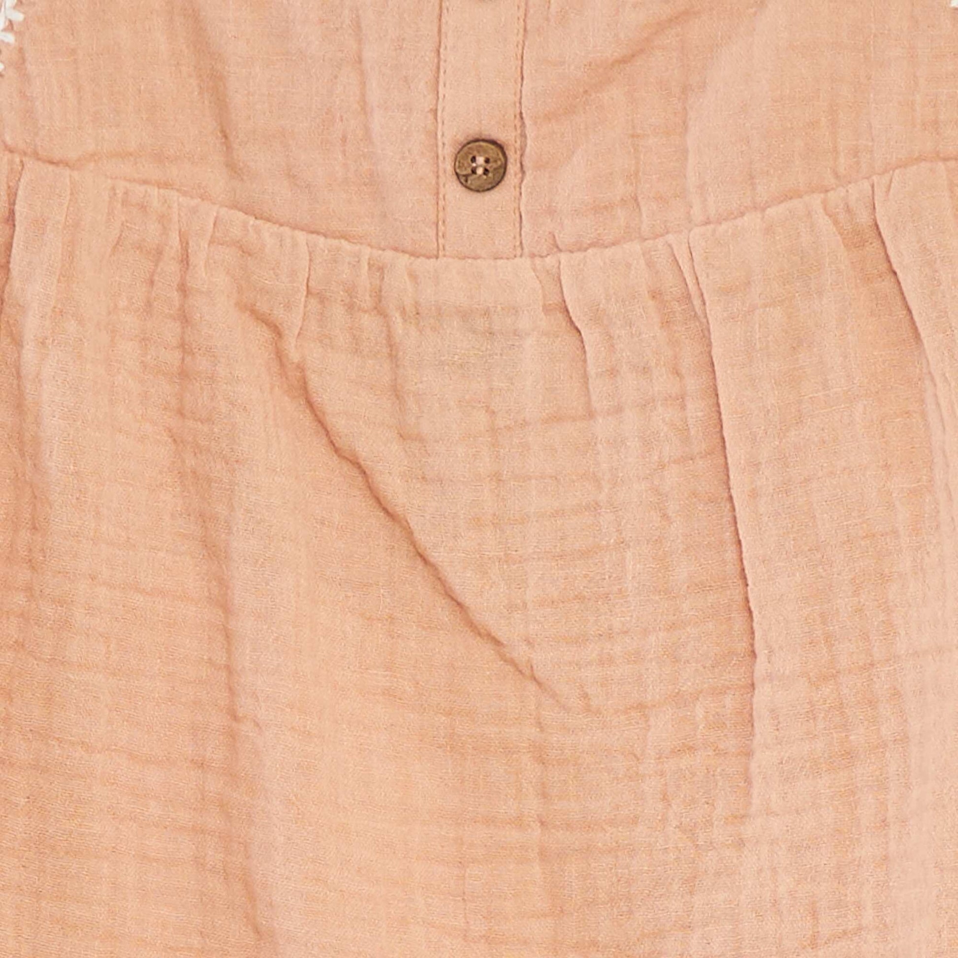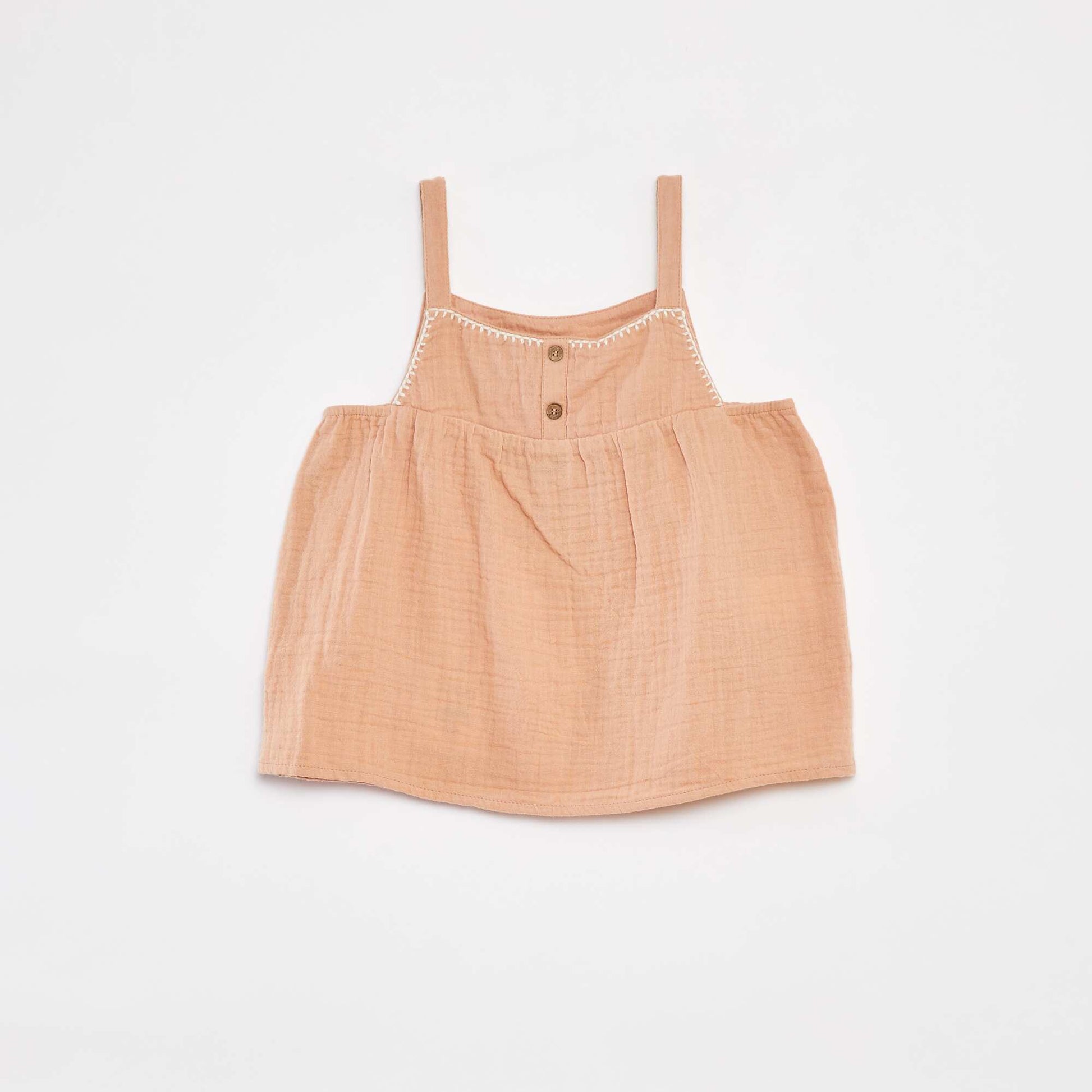 Un top estival en gaze de coton ! - Top fines bretelles - Boutons factices devant - Broderies fantaisies